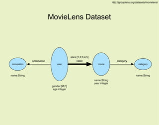 The document discusses the Gremlin graph traversal language and its application to the MovieLens dataset, which consists of user ratings for movies. It outlines how to create and manipulate a TinkerGraph, including loading the dataset, counting vertices and edges, and performing various queries to analyze user and movie data. Key insights include the average rating for movies and the categorization of films by genre.