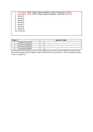2. Research on the target audience will be a key part of the project, including surveys and analyzing answers to help develop ideas.
