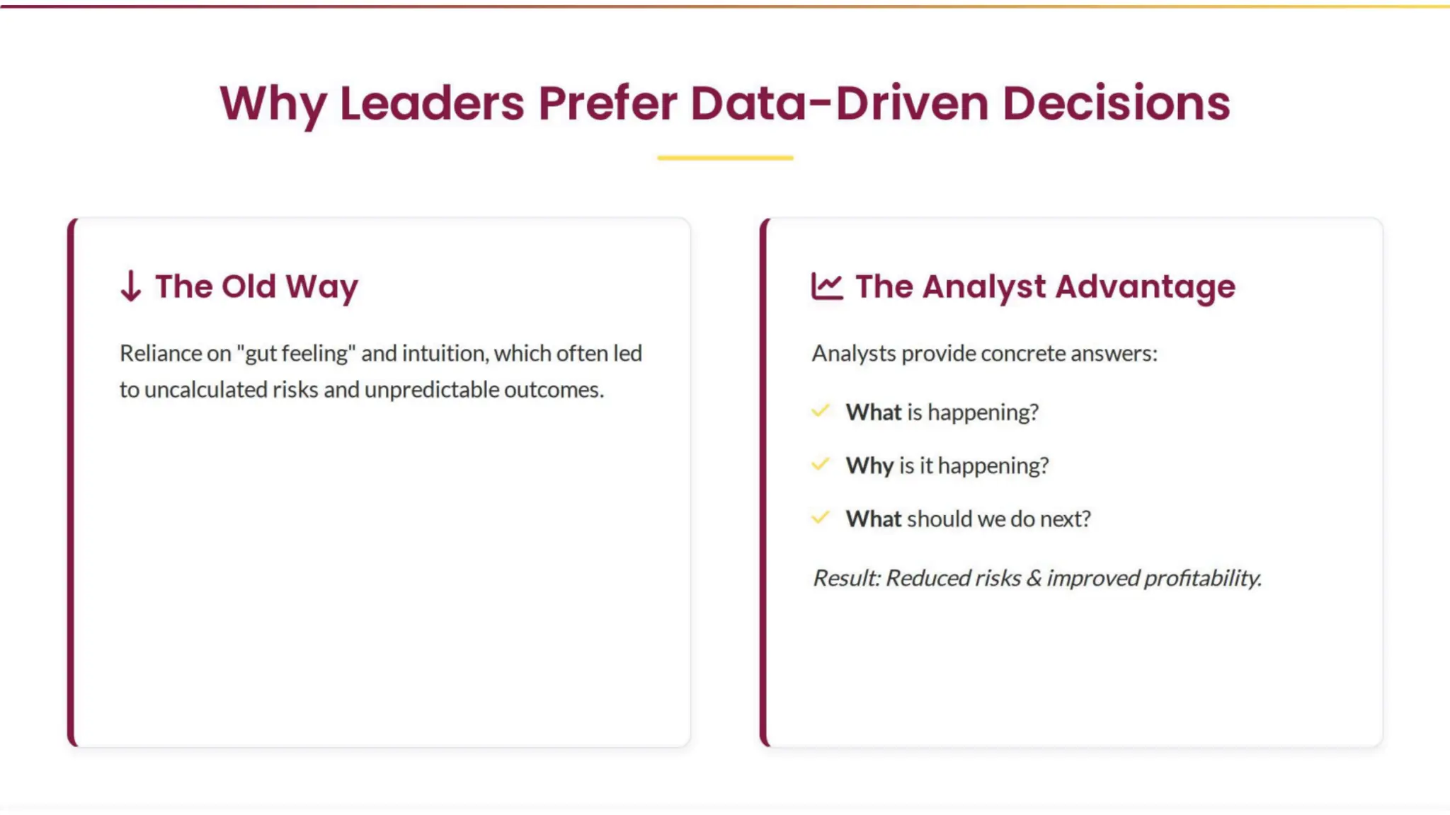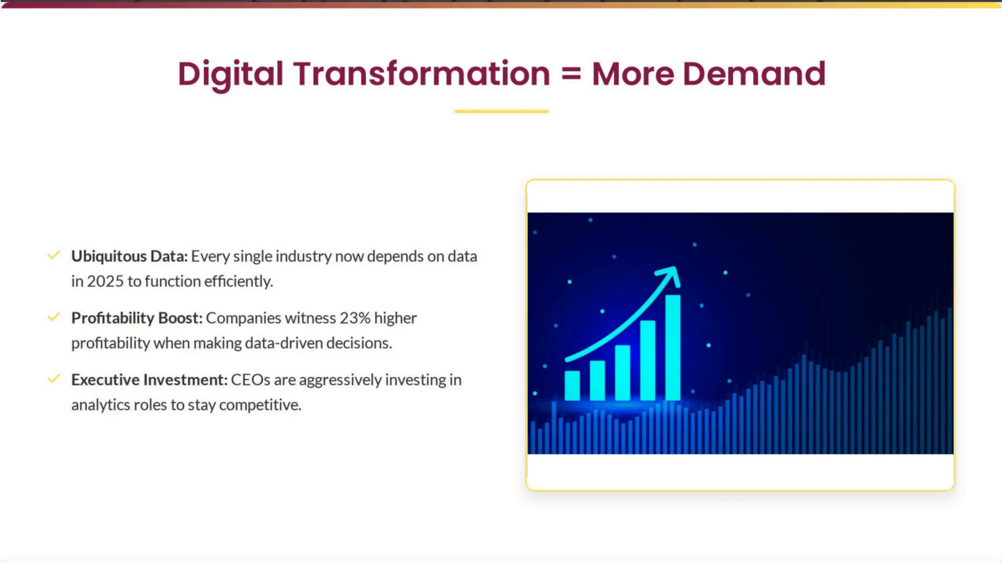 Data is no longer a support function it’s the backbone of modern business decisions. This presentation explains why the demand for Data Analysts is exploding across industries in 2025 and beyond. Inside this PDF, you’ll discover: 1. Why digital transformation is driving massive analyst demand 2. How industries like healthcare, finance, retail, and logistics rely on data 3. The real business value of data-driven decision-making 4. The role of AI in increasing (not replacing) analyst jobs 5. Salary growth trends and future-proof career opportunities Whether you’re a student, working professional, or business leader, this presentation clearly shows why data analytics is one of the smartest career paths of the decade.