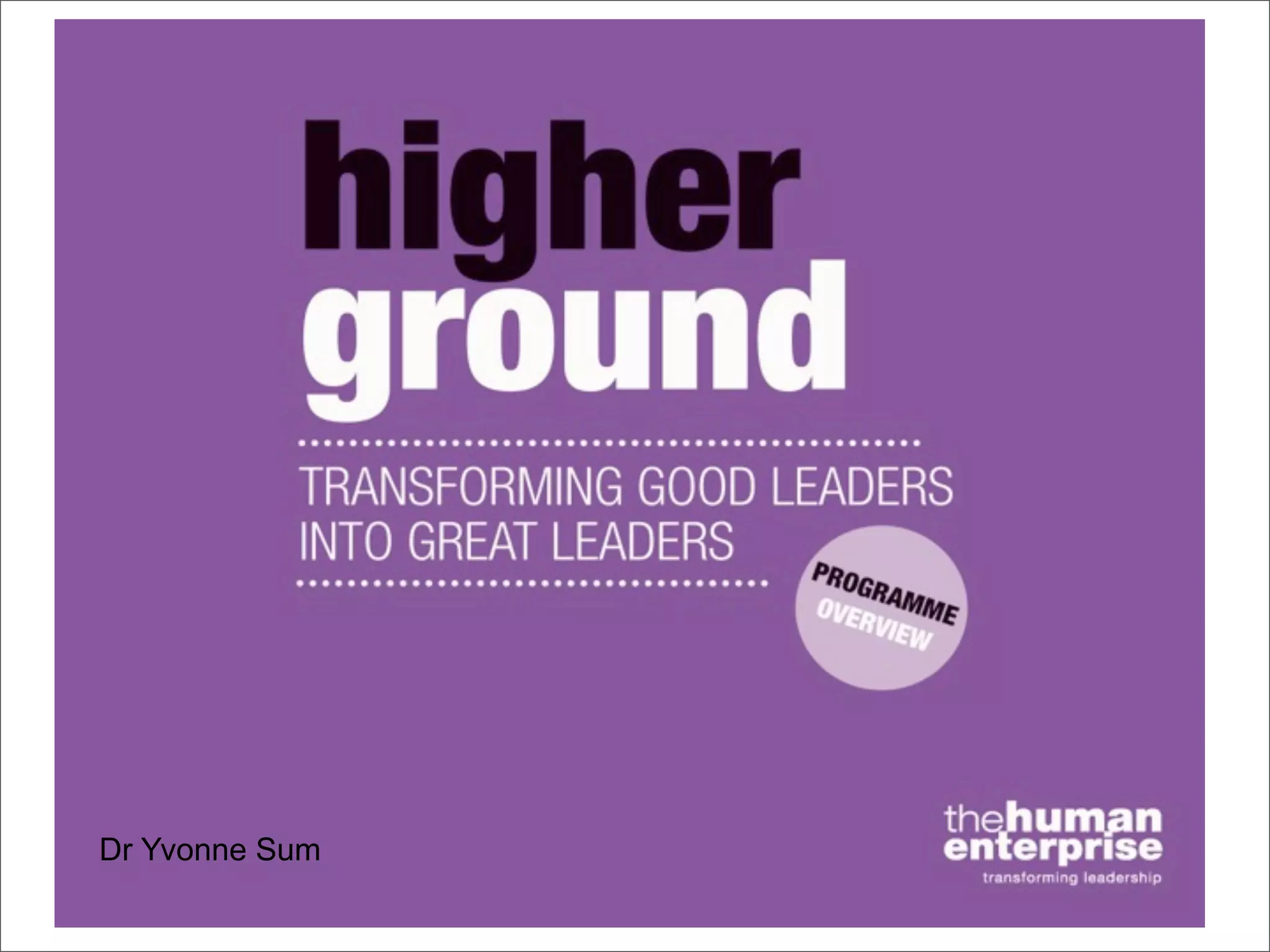 This document outlines an agenda for a leadership development program called Higher Ground. The program aims to enhance leadership potential and cover topics like leading self, teams, and organizations. It involves exercises, models, and coaching to develop skills. Participants will work on cross-functional projects and action plans to apply the learning back to their businesses. They will evaluate their outcomes and commit to next steps to continue developing their leadership abilities.