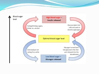 The endocrine system consists of glands that produce hormones, chemical messengers released into the bloodstream. Hormones cause slow, long-term, and often irreversible changes related to growth and reproduction. Key glands include the pituitary, thyroid, pancreas, adrenals, ovaries, and testes, each releasing important hormones like growth hormone, thyroxine, insulin, estrogen, progesterone, and testosterone. The endocrine system differs from the nervous system in using chemical signals instead of electrical ones, causing generally slower but often irreversible changes throughout the body.
