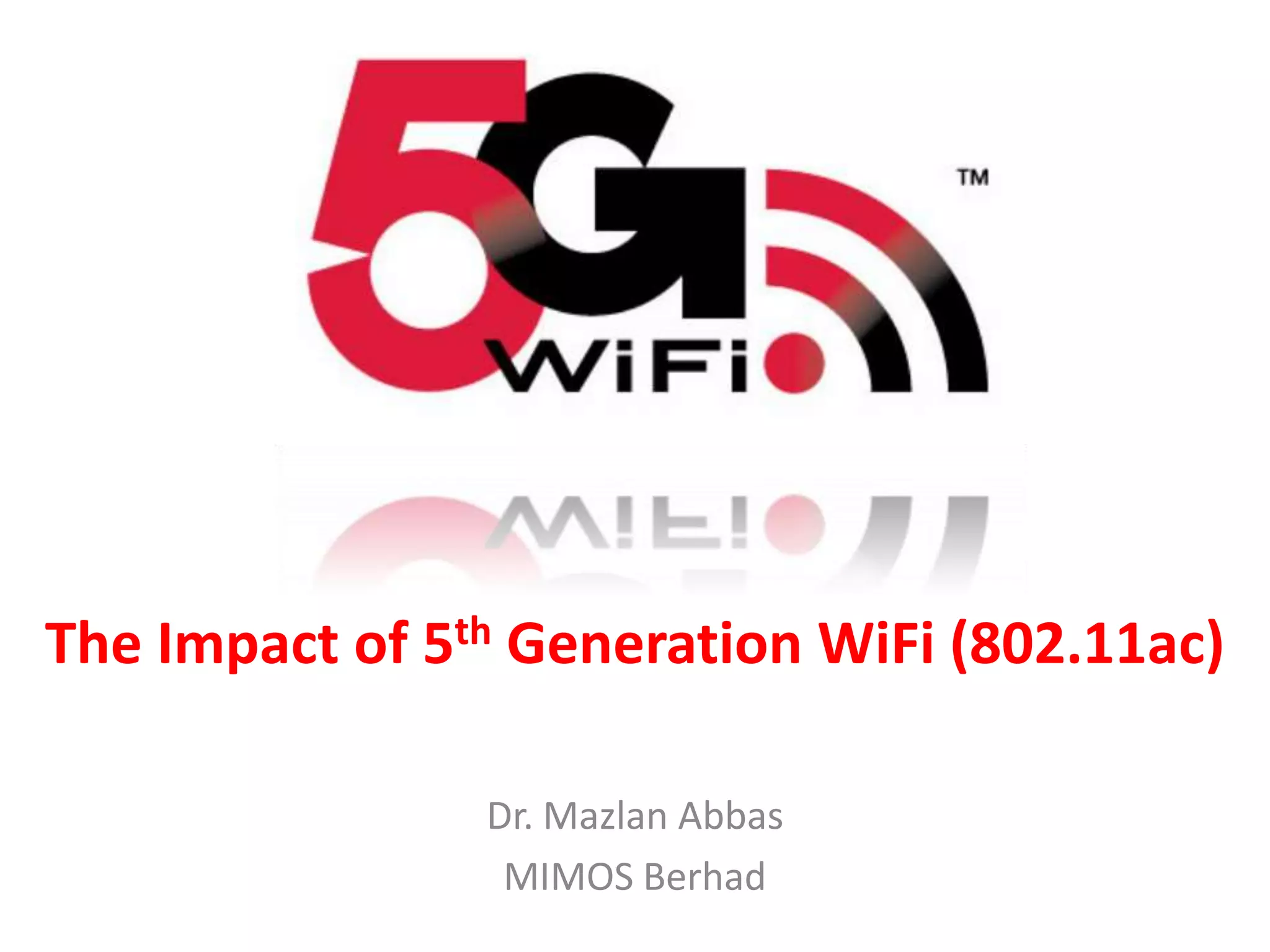 Wi-Fi ac (802.11ac) is the next generation Wi-Fi standard that promises gigabit speeds through improvements like wider channels and multi-user MIMO. There are four key drivers for its adoption: 1) increased internet usage like online video will strain current networks, 2) the rise of Wi-Fi only portable devices, 3) more smart TVs and devices connecting via Wi-Fi, and 4) current and future congestion problems as more devices use existing Wi-Fi bands. Wi-Fi ac aims to alleviate congestion by moving to the less crowded 5GHz spectrum exclusively, though this band may also become overloaded. It could allow for improved streaming of high quality video wirelessly throughout homes and