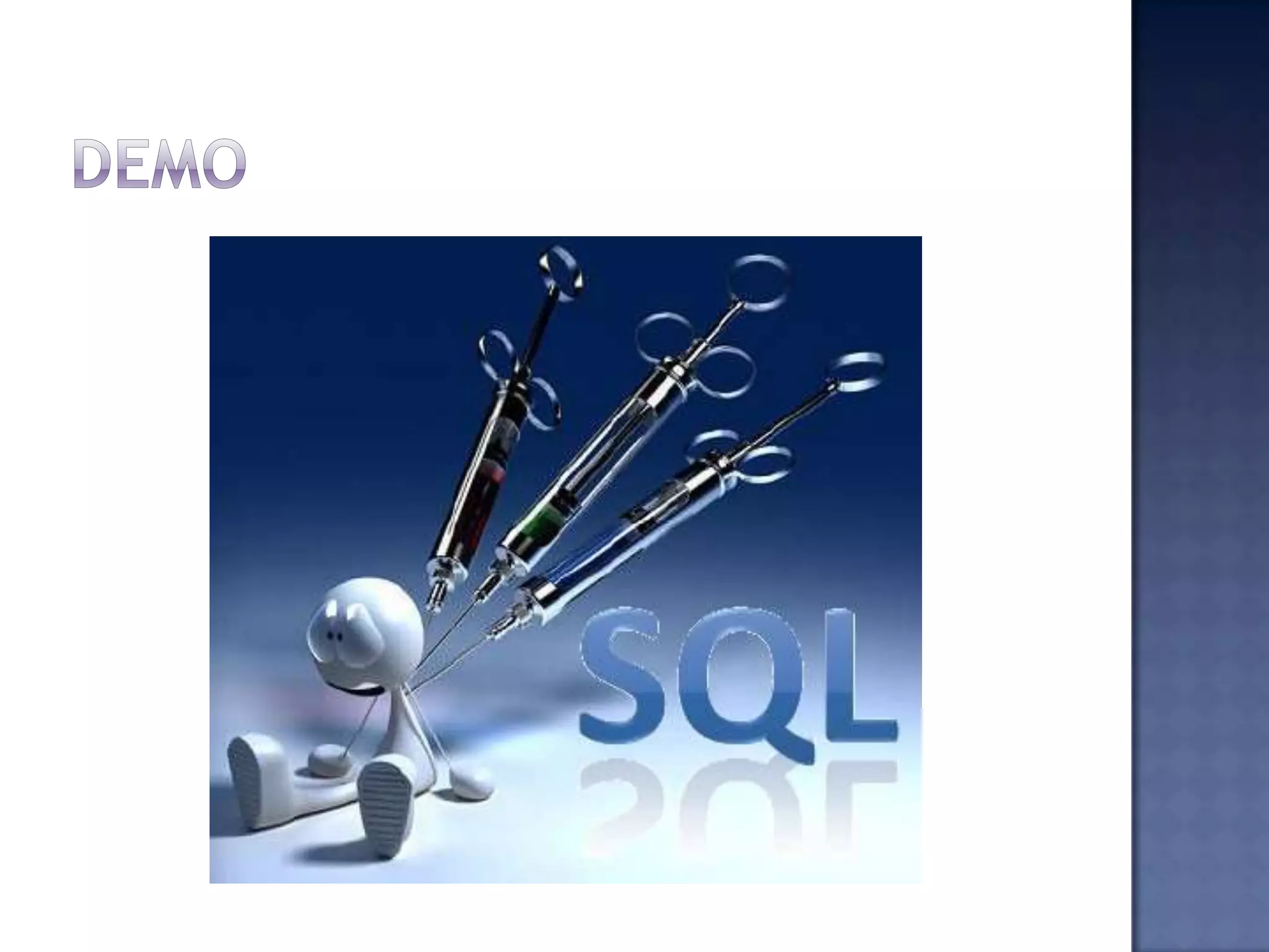 Ashish Gharti and Bijay Limbu Senihang are founders of Nep Security and IT security researchers who consult for Entrust Solution Nepal. SQL injection occurs when an attacker can influence SQL queries an application passes to a database, potentially allowing data leakage, site defacement, malware infection, or spear phishing. Defenses include addslashes(), mysql_real_escape_string(), is_numeric(), sprintf(), and htmlentities().