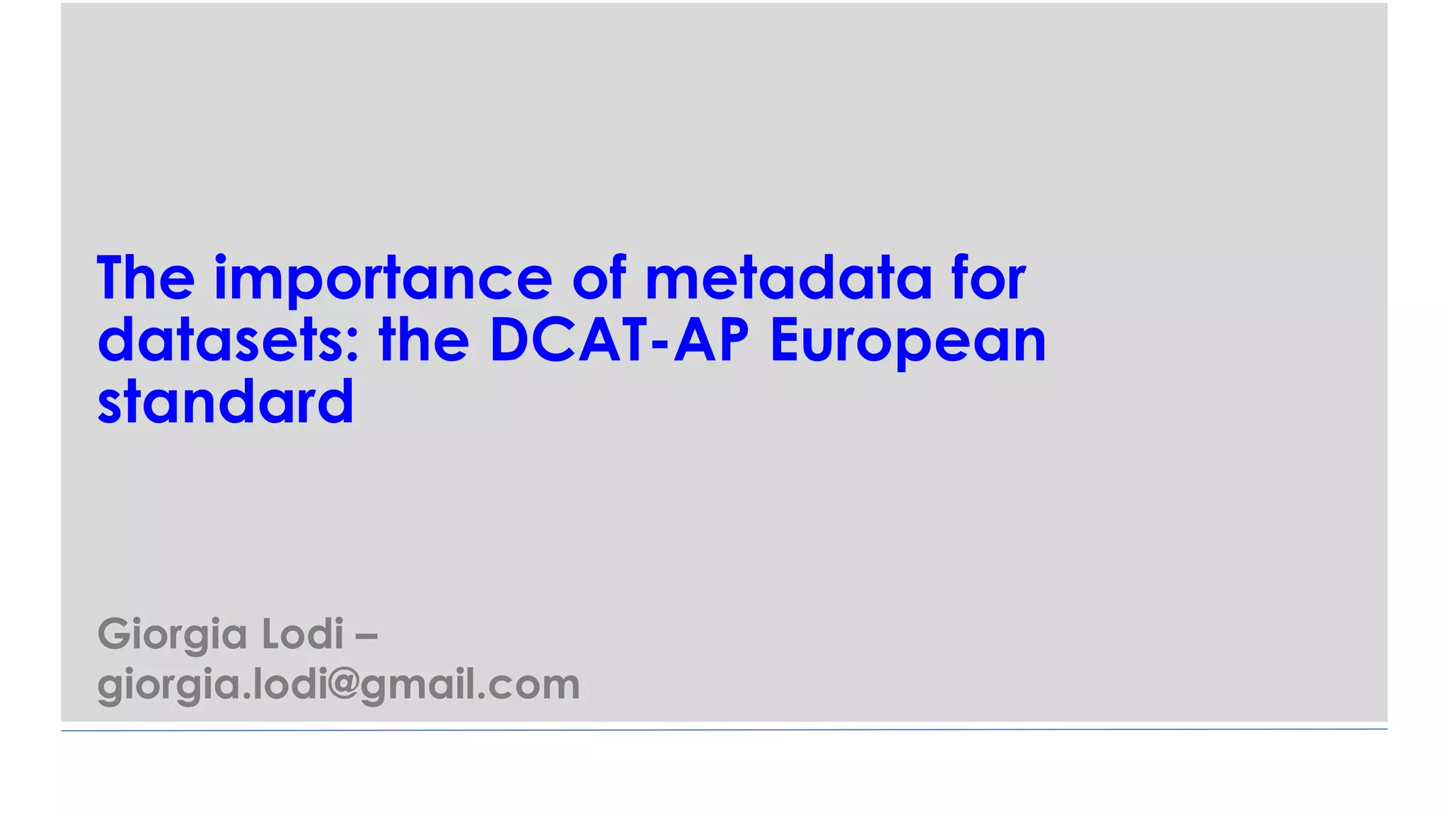 The document discusses metadata standards for datasets, including DCAT, DCAT-AP, and related standards. It provides 3 key points: