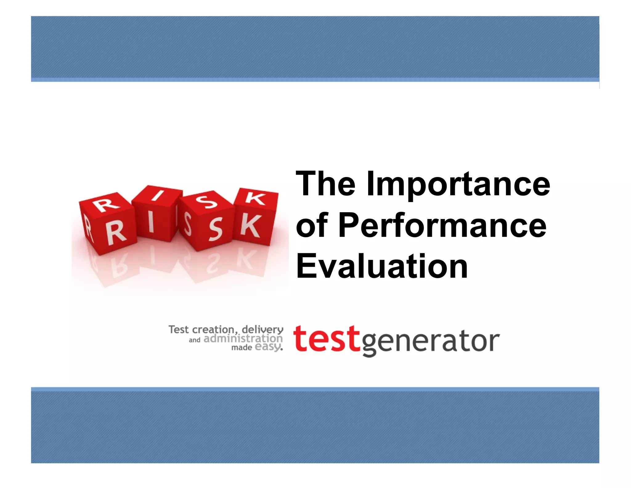 The document discusses the significance of performance evaluations in organizations, emphasizing their role in providing feedback, guiding careers, and measuring risk in high-risk industries. It introduces the Test Generator as a tool to aid in conducting performance reviews through various assessment methods. The document concludes with an invitation to learn more about creating customized performance evaluation tests.