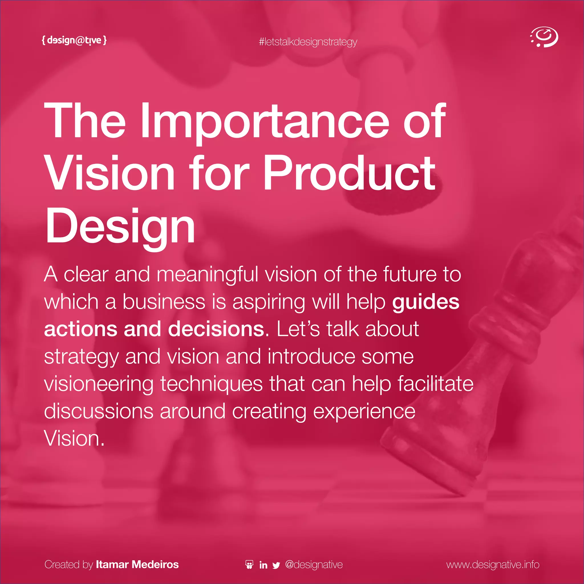 The document emphasizes the significance of a clear and meaningful product vision in guiding business strategy and design. It proposes visioneering techniques and strategic questions to aid in creating experience vision and highlights the importance of aligning design with business objectives. The discussion includes an example of a product vision statement tailored for a specific target customer.
