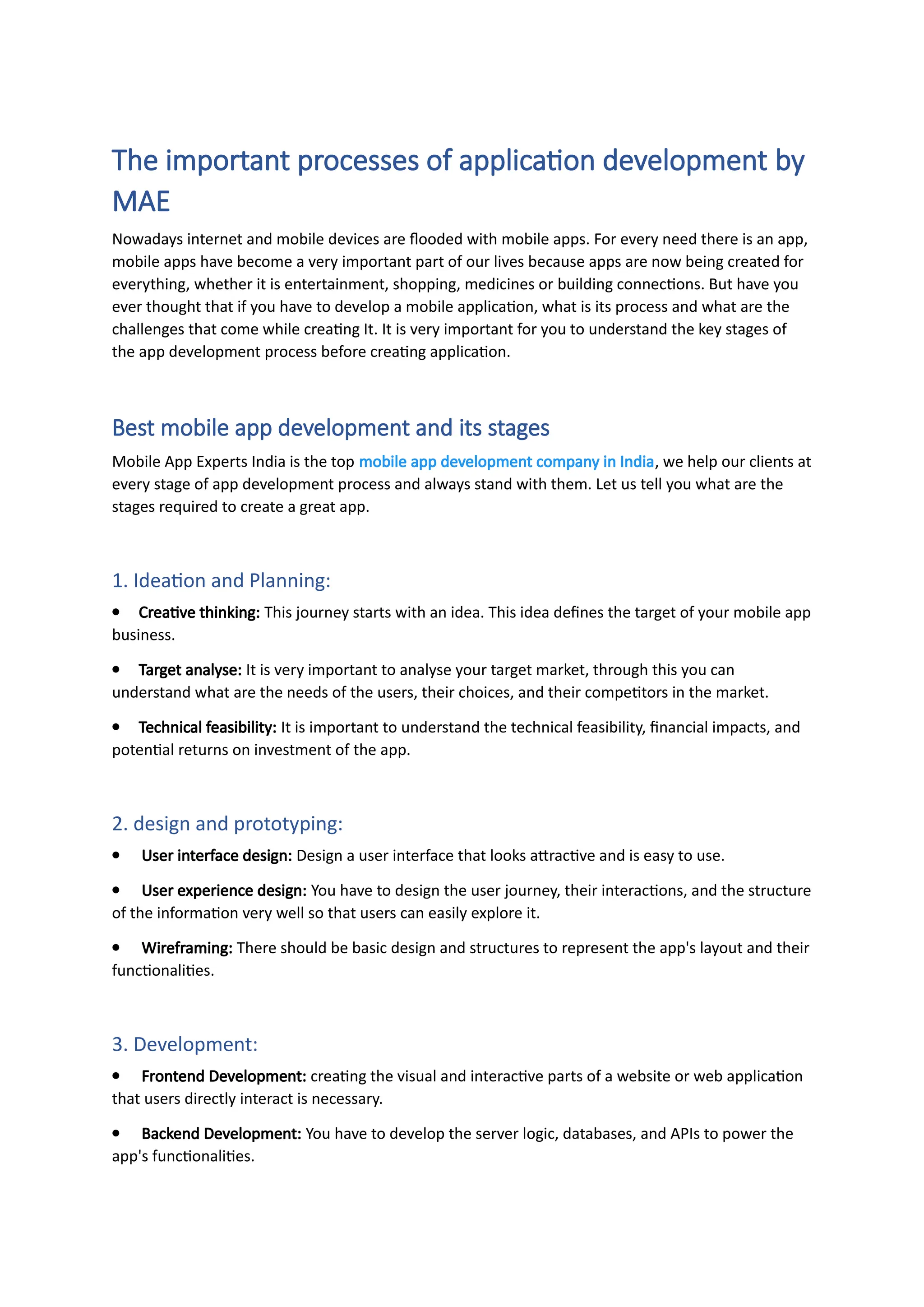 Mobile App Experts India is the top mobile app development company in India, we help our clients at every stage of app development process and always stand with them. Let us tell you what are the stages required to create a great app.