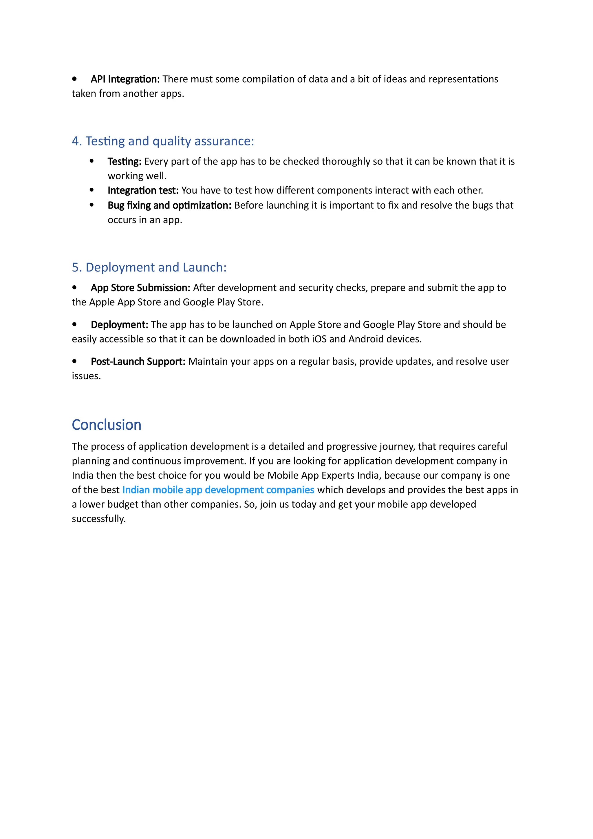 Testing: Every part of the app has to be checked thoroughly so that it can be known that it is