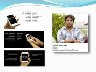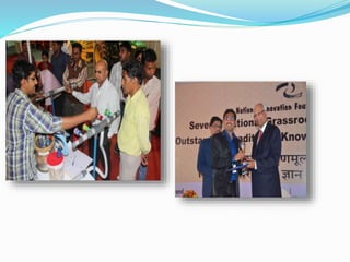 The document summarizes several innovations presented at an inclusive innovations event in 2013. It describes innovations such as: