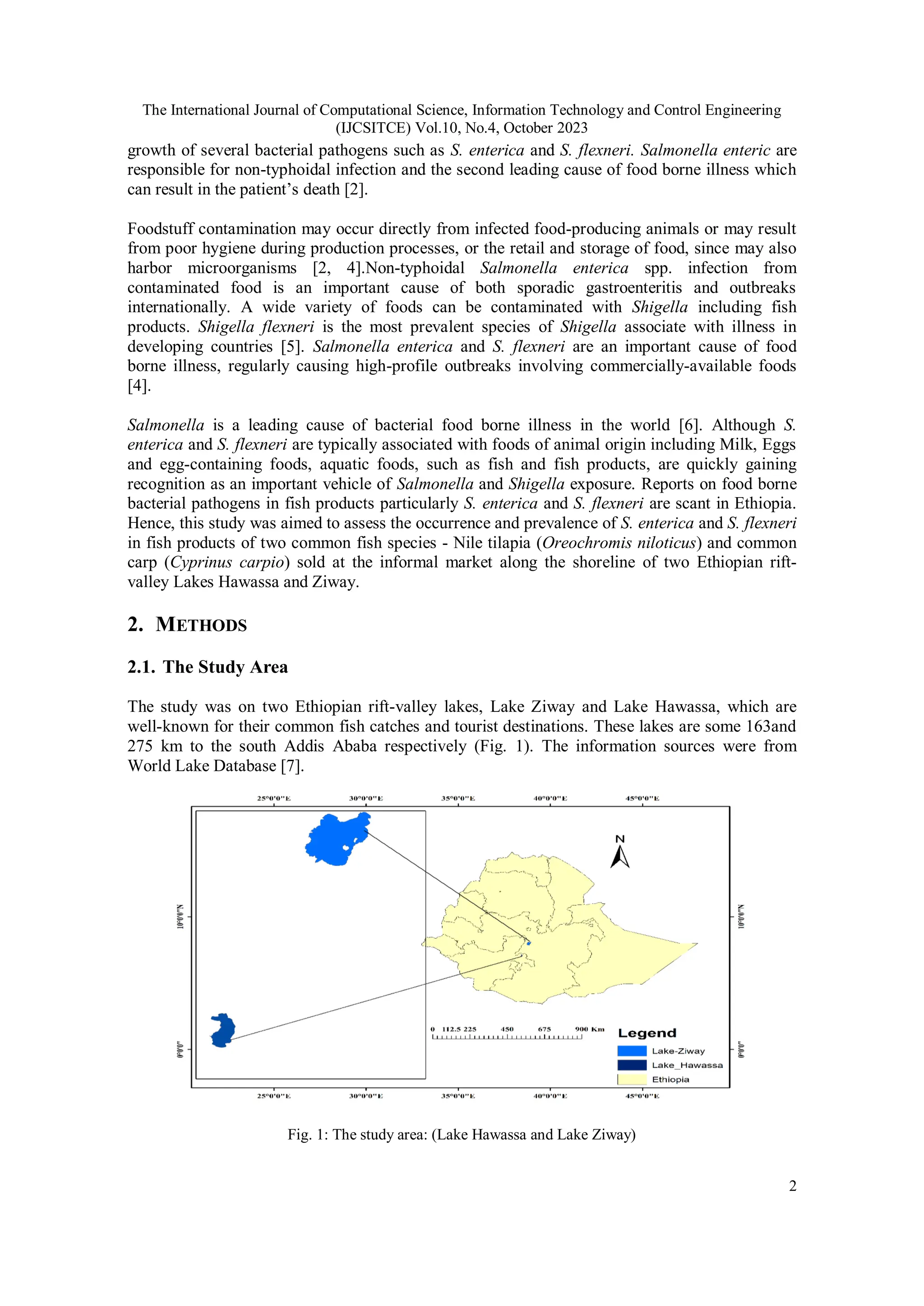 This study examined the prevalence of Salmonella enterica and Shigella flexneri in fresh fish products from informal markets near Lake Hawassa and Lake Ziway in Ethiopia, finding that 55% of the 60 samples tested positive for these pathogens. Specifically, S. enterica was found in 30% of the samples, while S. flexneri was found in 25%. The results highlight significant public health concerns related to foodborne diseases and emphasize the need for improved hygiene practices and regular inspections in fish processing.