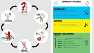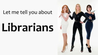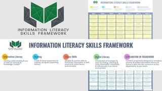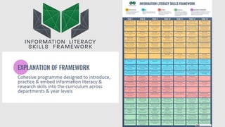 The document discusses the role of librarians and libraries in supporting learning and literacy. It outlines how librarians love to network, share information, find resources, and work with teachers and students. Librarians help develop students' information literacy and research skills through scaffolding research, curating resources, and teaching the research cycle. The document emphasizes the importance of collaboration between teachers and librarians, noting that partnerships can provide complementary expertise and support for student reading, research, and NCEA assessments.