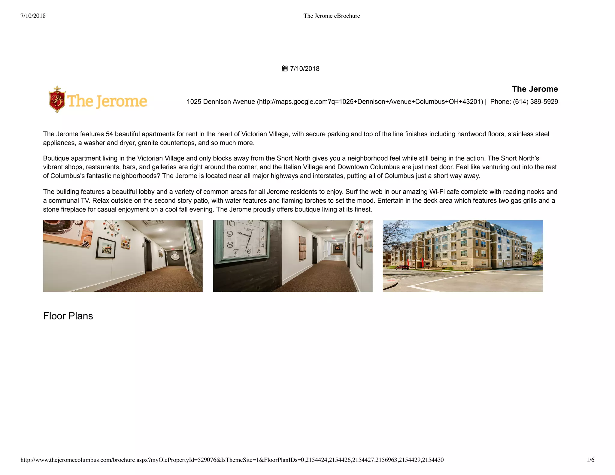 The Jerome offers 54 upscale apartments for rent in Victorian Village, featuring hardwood floors, stainless steel appliances, and granite countertops. Residents enjoy a variety of amenities, including a lobby, a Wi-Fi cafe, outdoor patios, and a secured parking garage. Located near major highways, it provides easy access to nearby neighborhoods, shops, and restaurants.