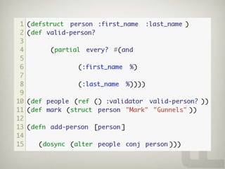 Catamorphic Labs promotes functional programming languages like Haskell, Erlang, and Clojure. Haskell uses pure functions, lazy evaluation, and strong typing. Erlang focuses on concurrency with lightweight processes that communicate through message passing without shared state. Clojure embraces Java interoperability and uses multimethods for pattern matching and shared transactional memory for concurrent updates. The presentation argues that functional programming can increase productivity by reducing accidental complexity through immutable data and avoidance of side effects.