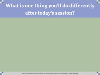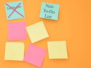 The document discusses strategies for maintaining work-life balance. It provides tools like the balance sheet to identify priorities, the not-to-do list to remove unnecessary tasks, and techniques for saying "no". Participants then shared personal approaches like scheduling important events first, finding flexibility from managers, and surrounding oneself with supportive people. Workplace cultures that enable balance were praised, and dropping low-value tasks was recommended to sustain energy.