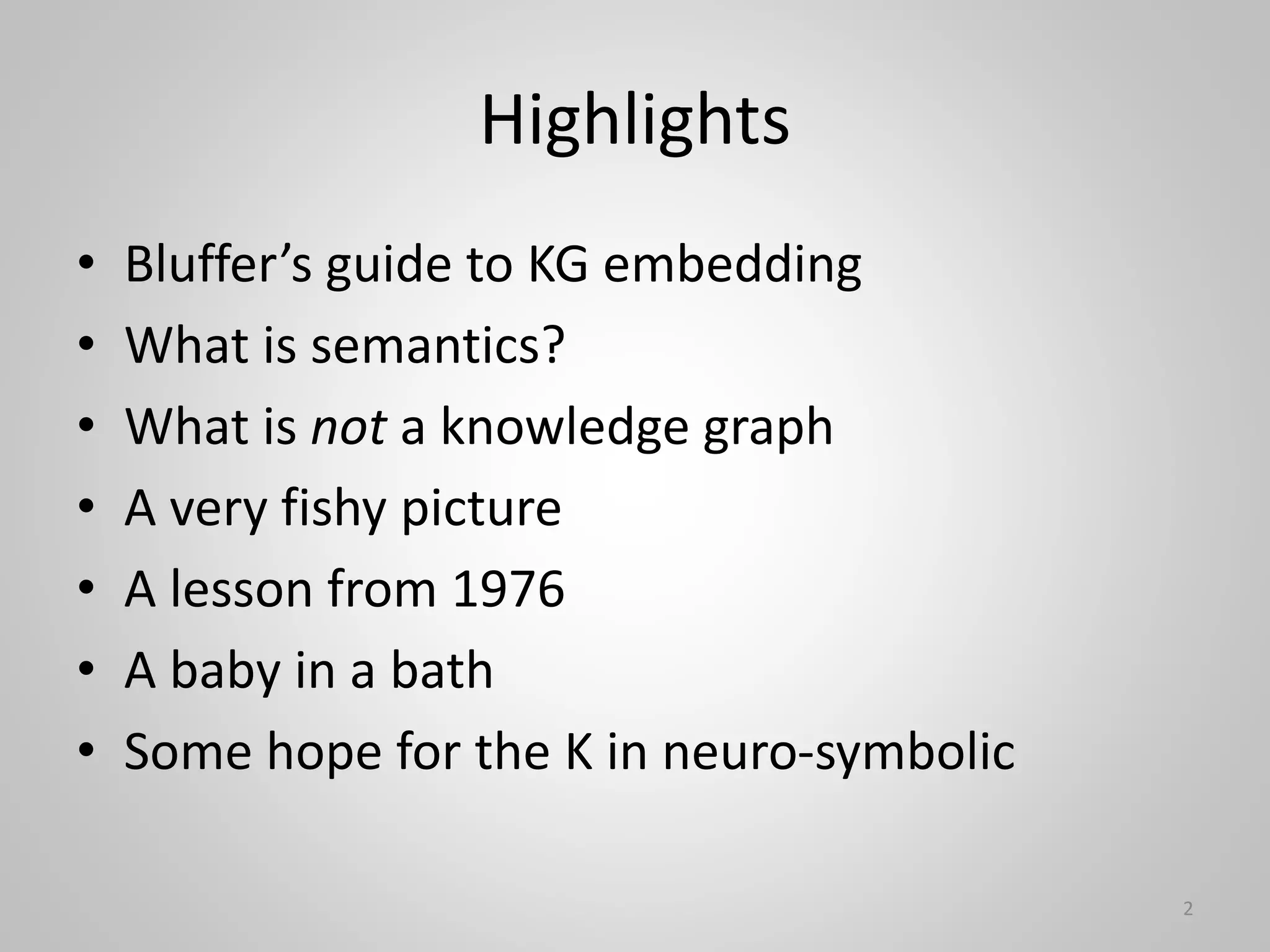 The document discusses the role of knowledge in neuro-symbolic AI and critiques current knowledge graph embeddings for lacking true semantics, arguing that most embeddings do not support inference. It presents proposals for improving semantic embeddings and stresses the importance of retaining semantic meaning in AI representations. Ultimately, it emphasizes that semantics should focus on predictable inference rather than just symbolic representation.
