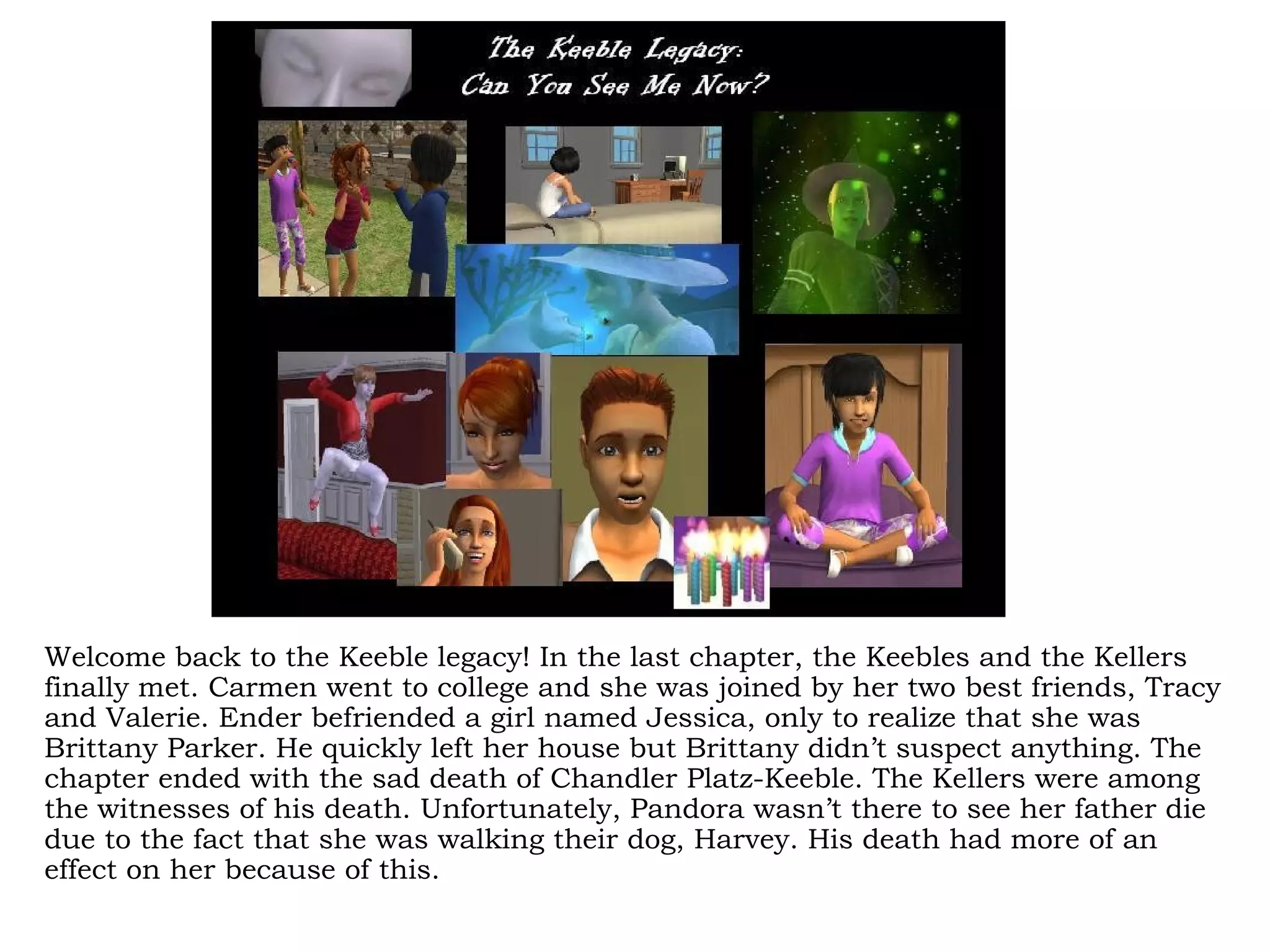 The chapter provides updates on several characters. Megan goes bug hunting but sees something strange. Ender tells Carmen about their grandfather's death. Brittany realizes Ender knows her secret and plots revenge. Tracy meets a vampire named Count Alan at a nightclub. Alan invites Tracy to his home but warns the other vampires may harm her.