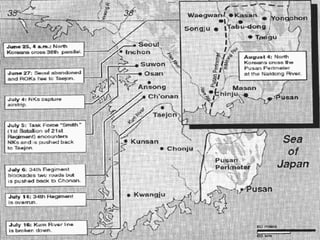 1) The Korean War began in 1950 when North Korea invaded South Korea, leading the UN to authorize troops to defend South Korea.