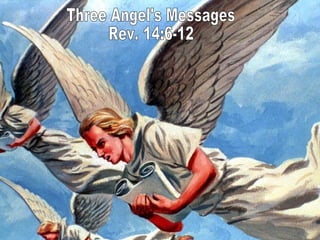 The document discusses the three angels' messages of Revelation 14. It explains that the messages are linked and deal with restoring truth on key doctrines that had been corrupted, such as the everlasting gospel, the judgment hour, and avoiding the mark of the beast. The first angel's message in particular focuses on preaching the pure everlasting gospel worldwide and proclaiming that the hour of God's judgment has come, calling people to worship the Creator. These messages contain vital warnings for the last days.
