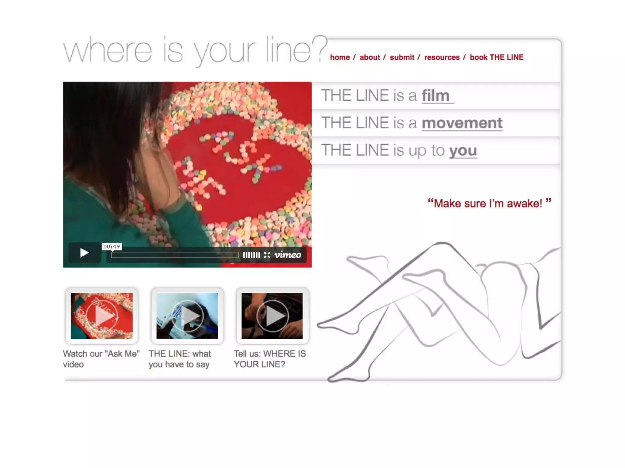 This document provides information about the THE LINE campaign and documentary. The campaign aims to start a conversation about consent, sex, and rape through social media. It will feature a 24-minute documentary called THE LINE about these topics. The campaign goals are to inspire, capture, and share conversations on social issues like what constitutes private matters and relationships. It will use blogs, stickers, Facebook, Twitter, and videos to engage people, especially youth. The campaign team hopes to make THE LINE a platform to amplify youth voices on sexual health issues.