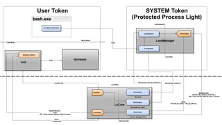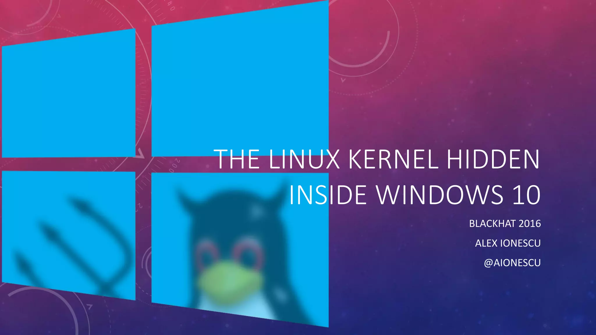 The document discusses the architectural overview of the Linux kernel hidden inside Windows 10. It describes the components that enable running Linux processes as "Pico processes" inside Windows, including the LXCORE kernel driver that implements the Linux ABI and API, and the LXSSMANAGER user-mode service that provides the external interface. The document outlines the initialization and functionality of these components, such as how they implement system calls, virtual file systems, and inter-process communication between Linux and Windows processes.