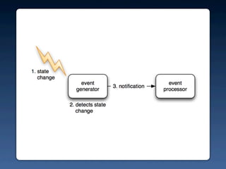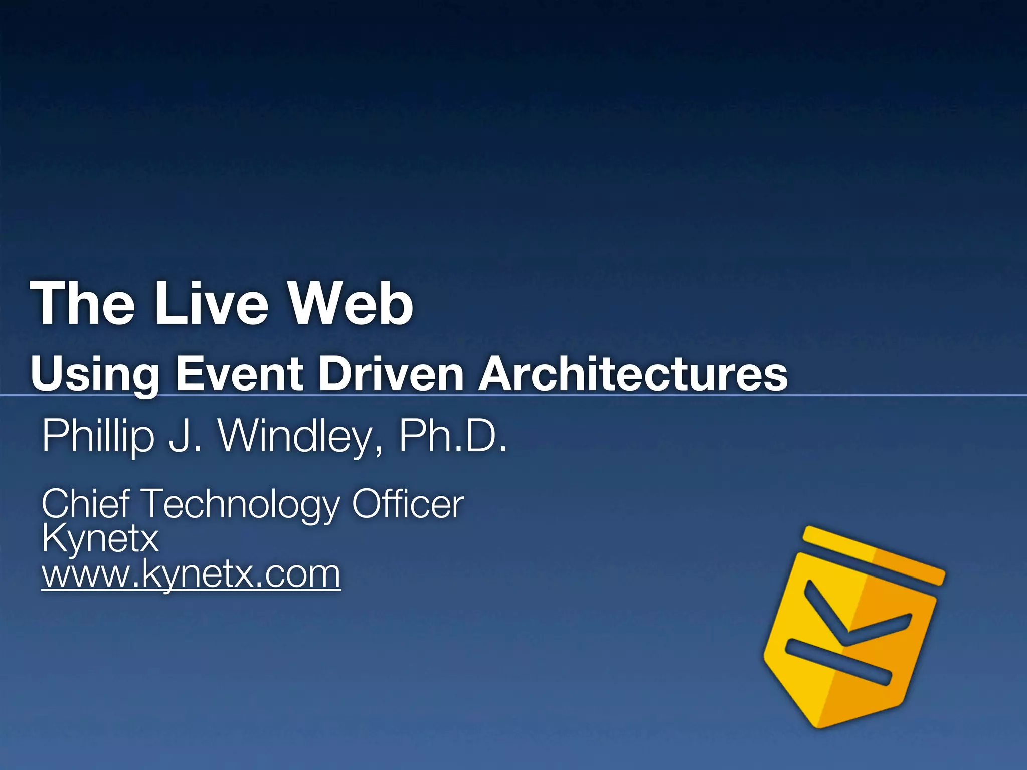 The document discusses the concept of an event-driven architecture in the context of the live web, highlighting its significance in applications that utilize multiple APIs for real-time data access. It contrasts static web interactions with dynamic event-driven interactions, emphasizing the benefits of low coupling and the autonomous nature of events in these systems. Additionally, the document outlines various topics related to web evolution, the principles of dynamic data handling, and effective user interactions.