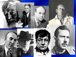 The Lost Generation refers to American writers in the 1920s-1940s who came of age during WWI and felt disillusioned. Key writers included Ernest Hemingway, F. Scott Fitzgerald, John Dos Passos, Archibald MacLeish, E.E. Cummings, and Ezra Pound. They considered America less great than believed because it lacked a multicultural society.