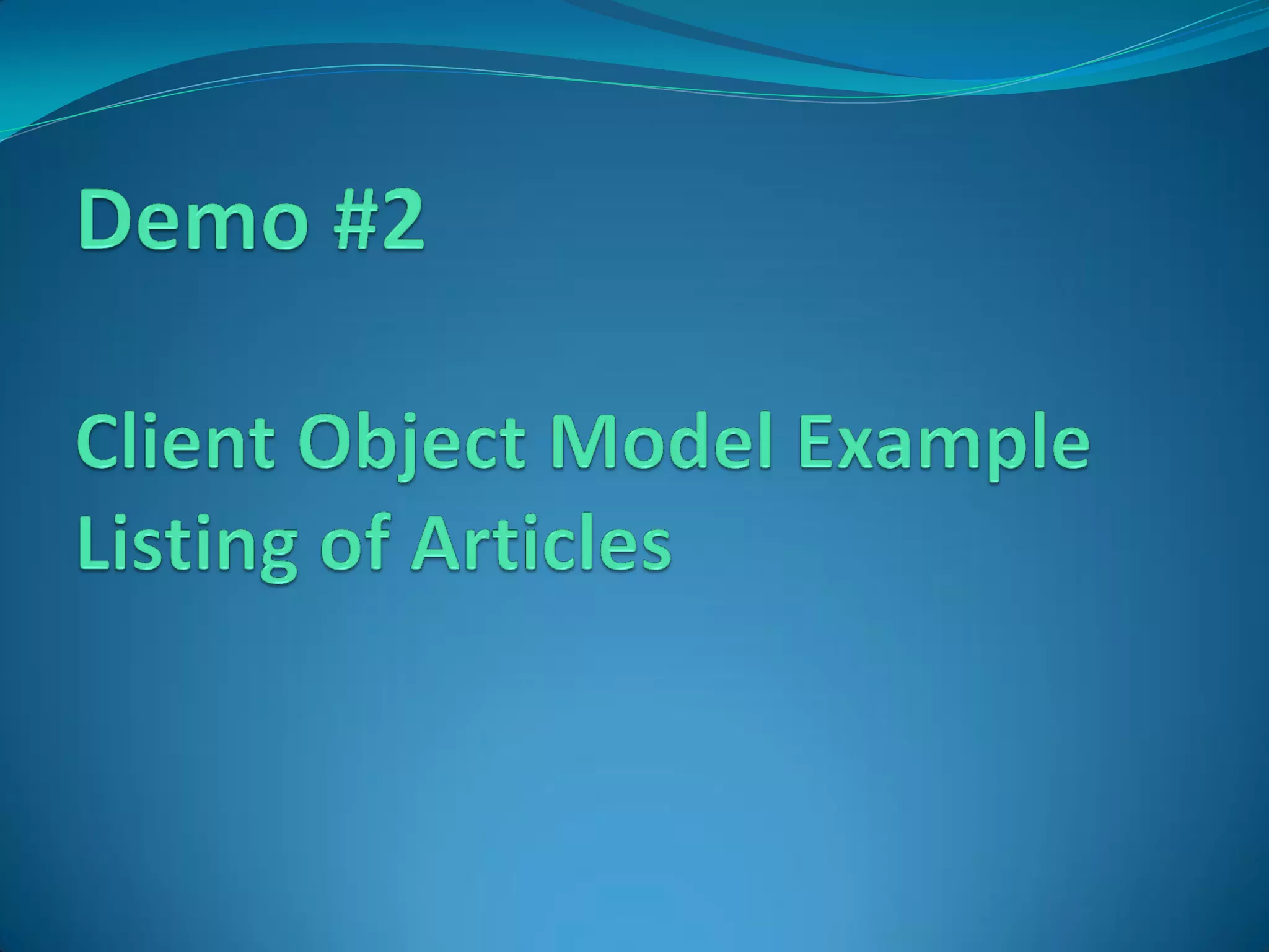 The document summarizes Peter Serzo's presentation on the client-side story and object model in SharePoint 2010. It discusses how the client object model allows accessing SharePoint data through managed code, Silverlight, JavaScript and web services. It provides examples of using the client object model to upload files, retrieve list data, and get user profile properties. It also covers using jQuery templates and REST to display and format list data on a page.