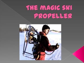 The document describes a new ski propeller invention made of carbon fiber that is lightweight, comfortable, easy to use, safe and dynamic. It will cost $3,003.99 to bring the product to market and the ski propeller will be priced at $6,006.99, generating $3,003 per unit profit. An eye-catching marketing campaign starring Yeti monsters will promote the product through events sponsored by Red Bull. The accounting department estimates the company will make $1,000,000.99 in profit within two years.