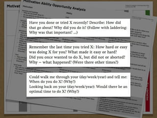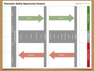 The document presents the Mao model of persuasive design, emphasizing the need to understand human behavior and motivators to effectively influence change. It critiques existing behavior models for lacking considerations of emotions, context, and social factors while offering a structured approach to analyze and facilitate behavior change. Key methods include defining goals, involving participants, and analyzing obstacles to design interventions that can catalyze desired actions.