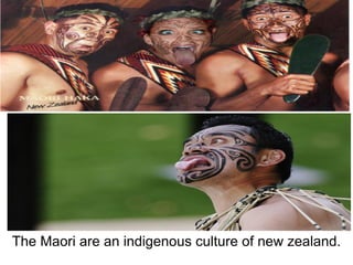 The Maori are the indigenous people of New Zealand, a large island in the South Pacific Ocean located off the coast of Australia. While some Maori continue traditional cultural practices like the haka war dance and ta moko tattooing, others have adopted non-traditional modern lifestyles. However, traditional Maori culture continues to influence contemporary Maori society despite struggles with issues like poverty that affect many indigenous groups after conquest.