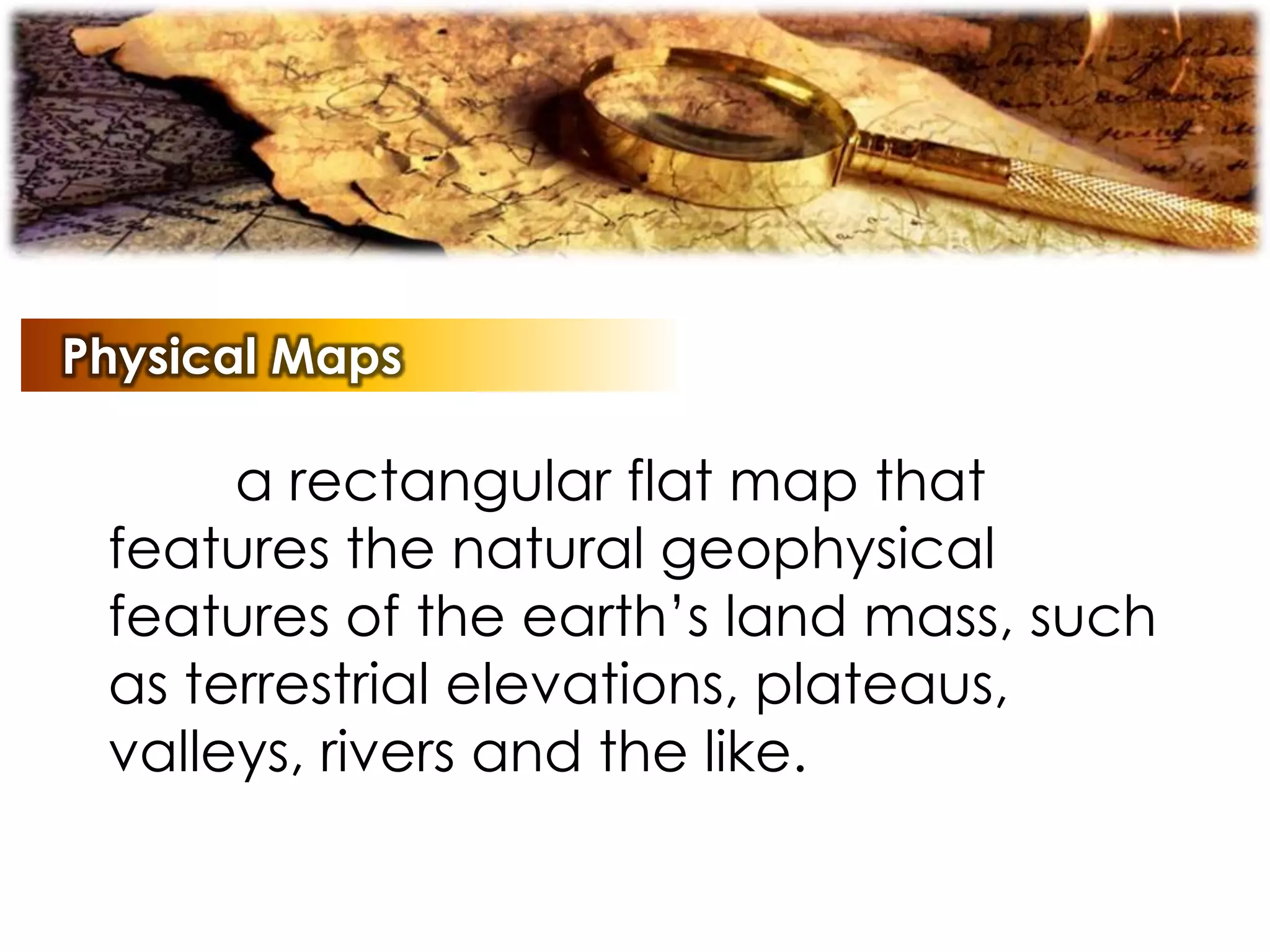 The document describes various types of maps, including physical maps, political maps, and nautical charts, detailing their features and uses. It covers geographical concepts such as longitudes, latitudes, and cardinal points, as well as significant Earth features such as the equator, poles, and various landforms. Additionally, it explains climatic zones and provides definitions of key geographical terms.