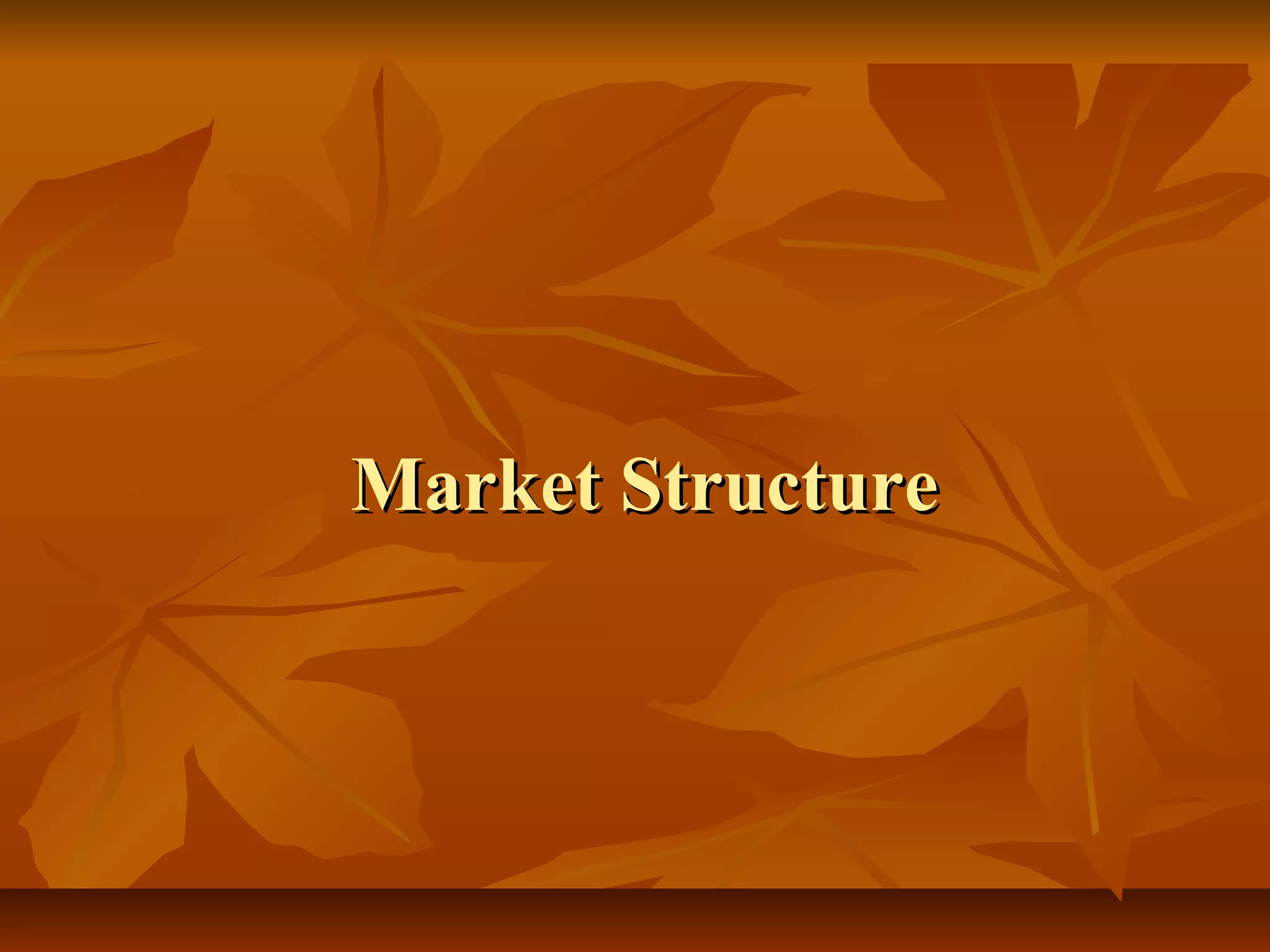 Market structure identifies how competitive a market is based on factors like the number of firms, nature of products, degree of monopoly power, and barriers to entry. It ranges from perfect competition on the highly competitive end to pure monopoly on the less competitive end. The further right on the scale, the greater the monopoly power of firms. Market structure models are representations of reality that help analyze industry competition levels and firm behavior.