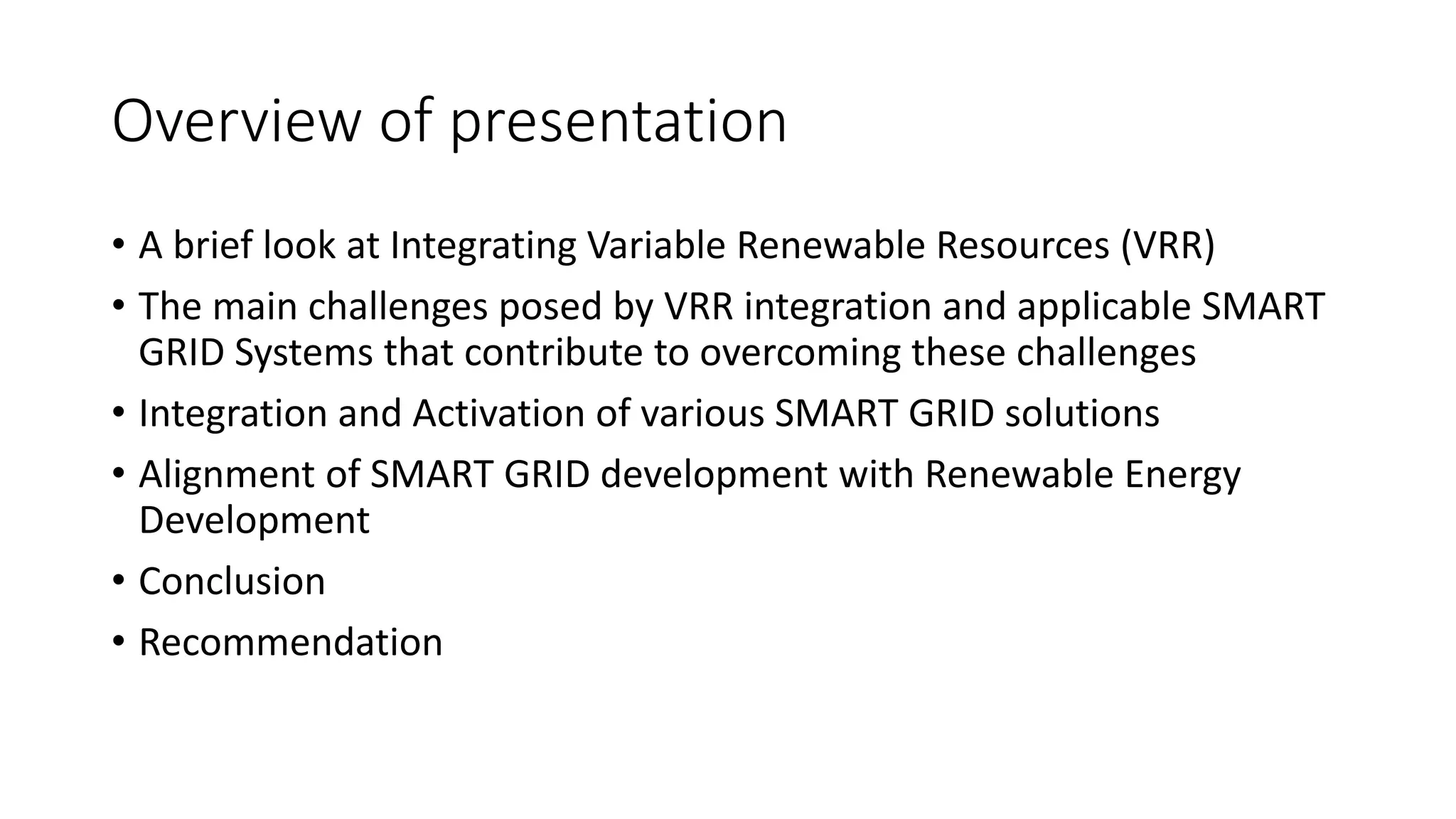 The document discusses the integration of variable renewable resources (VRR) within smart grid systems in Jamaica, addressing challenges such as the variable nature of renewable energy affecting grid stability. It outlines the importance of modernizing the grid and employing smart technologies to enhance energy efficiency and facilitate higher penetration of renewables. Recommendations include aligning smart grid roadmaps with future renewable energy supply and ensuring effective resource planning to optimize the integration of renewables.