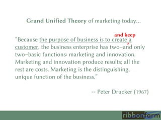 The document discusses the evolution of marketing concepts, emphasizing the idea that the medium shapes the message and its spread. It reflects on historical perspectives and current trends in marketing, suggesting a shift from focusing on episodic campaigns to maintaining a persistent presence in consumer contexts. Additionally, it critiques the efficiency of advertising expenditure and highlights the changing relationship between businesses and consumers over time.