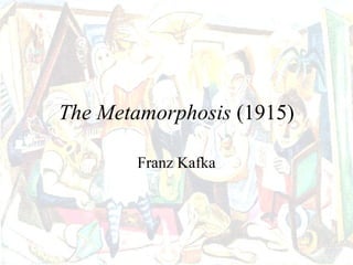 Franz Kafka was a German-speaking Jewish writer living in Prague in the early 20th century who felt like an outsider. He wrote The Metamorphosis in 1915, telling the story of Gregor Samsa who wakes up transformed into a large insect. Gregor's transformation represents alienation and meaninglessness in modern life. Through his new condition, Gregor begins an inward journey of self-discovery and accepting responsibility for his own life, ultimately finding meaning before his death. The story uses parable and symbolism to examine human psychology and behavior in a detached, thought-provoking way.