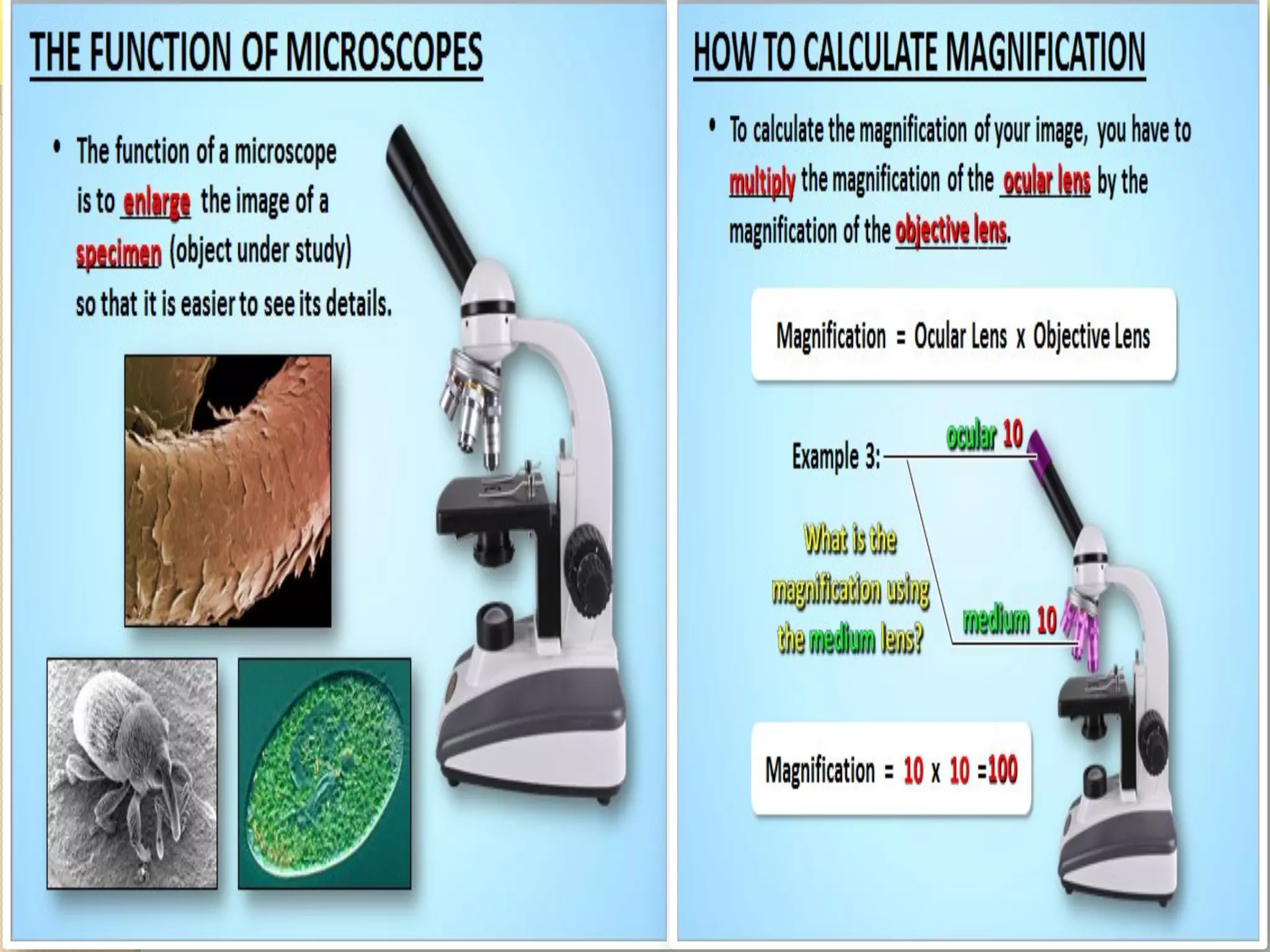 Microscopes are instruments that magnify small objects so they can be seen more clearly. There are two main types: simple microscopes, which use a single lens, and compound microscopes, which use multiple lenses to provide higher magnification. Compound microscopes have various parts, including objective lenses of different magnifications, eyepieces, a stage to hold samples, and focus knobs to adjust the image sharpness. They work by using lenses to bend light from the sample through the microscope's optical system and into the user's eye.