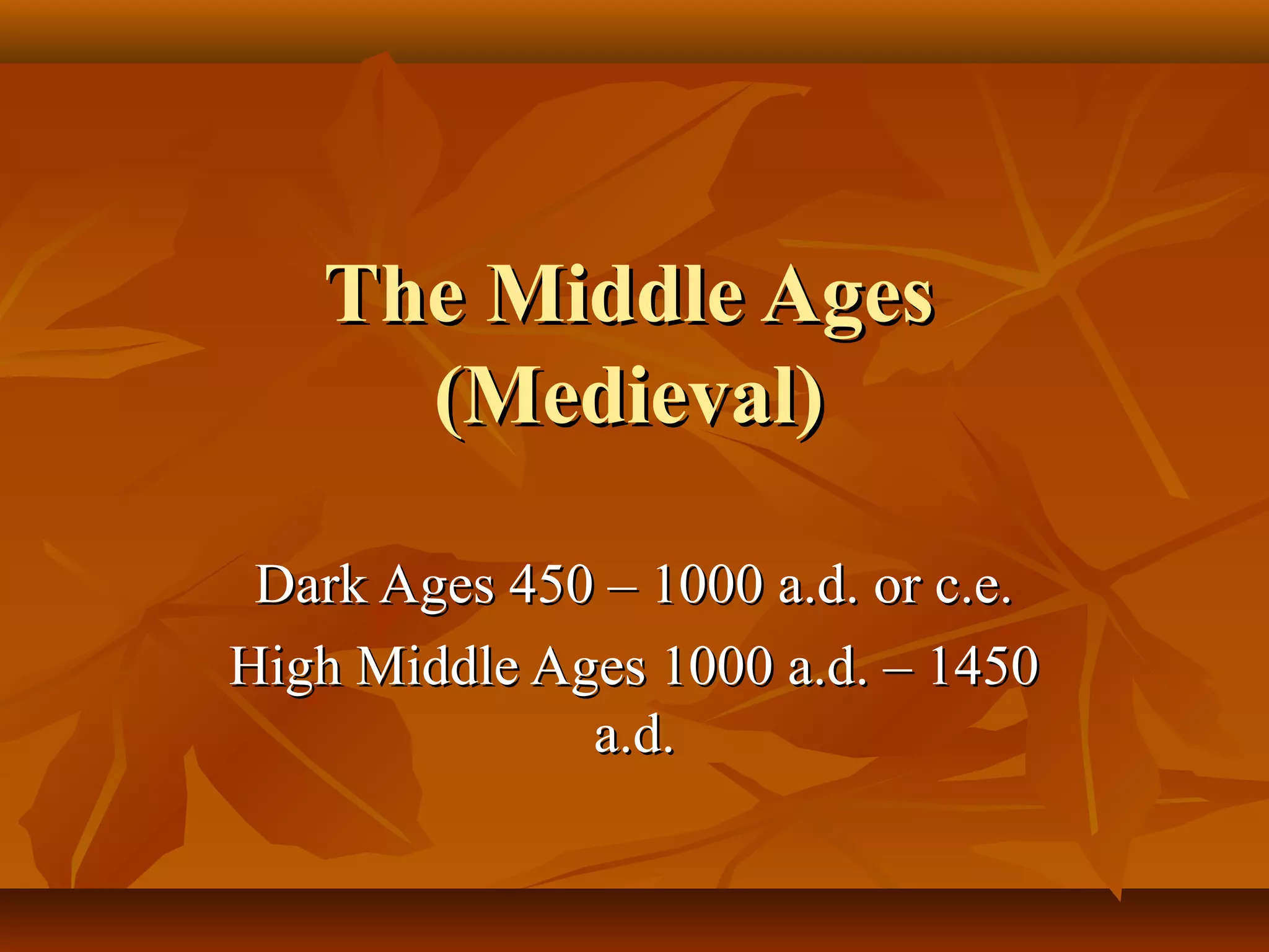 The document summarizes aspects of music during the Middle Ages, specifically the Dark Ages (450-1000 AD) and High Middle Ages (1000-1450 AD). It describes how the Roman Catholic Church filled a void of authority after the fall of Rome. Plainchant, or Gregorian chant, was the primary sacred music and was monophonic and unaccompanied. The High Middle Ages saw the development of polyphony, musical notation, and composers like Leonin and Perotin of the Notre Dame school. Secular music emerged through troubadours and trouveres. The 14th century was a time of crisis and saw the development of isorhythm and composers like Machaut in the Ars Nova style.