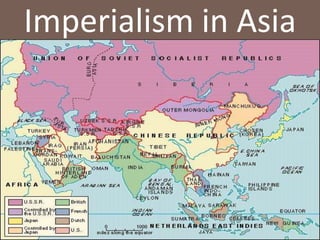 The document summarizes the history of imperialism and conflicts in the Middle East from 1945 to the present. It discusses the end of European imperialism, the establishment of Israel and subsequent Arab-Israeli wars, ongoing Palestinian-Israeli conflict, Islamic revolutions in Iran and rise of Islamic terrorism. It also outlines the US response including the War on Terror in Afghanistan and Iraq in the aftermath of 9/11 attacks.