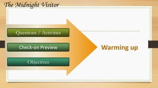 The document describes a secret agent named Ausable who is unexpectedly visited by another agent, Max, who is holding a gun. Ausable seems helpless due to his overweight and older appearance, but he is able to cleverly trick Max using his quick wit and deception. He fabricates a story about a non-existent balcony in his room, causing Max to believe the police are coming and to jump to his death. Despite his physical shortcomings, Ausable is able to outsmart his enemy through his mental abilities and presence of mind.