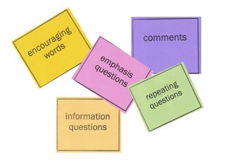 The document summarizes Tamara Jones' presentation on bringing pragmatics and pronunciation into conversation classrooms. It discusses raising students' awareness of intonation and sentence stress through videos, recordings and activities. It also covers giving students explicit instruction on communicating listening, disagreeing politely and asking favors. Various classroom techniques and supplemental materials are presented to help students improve their pragmatic and pronunciation skills.