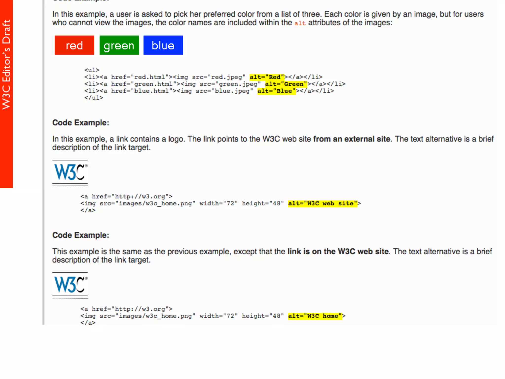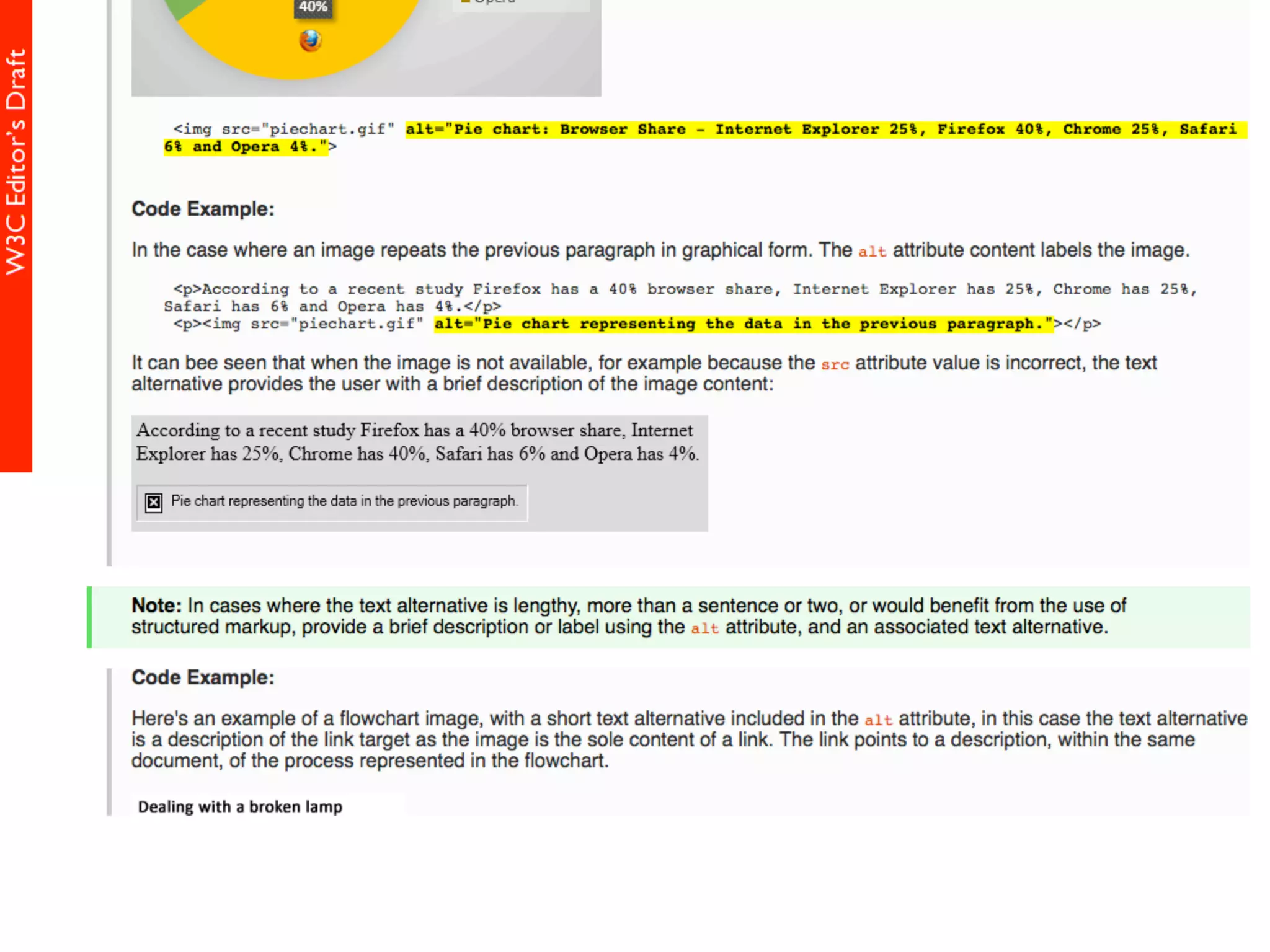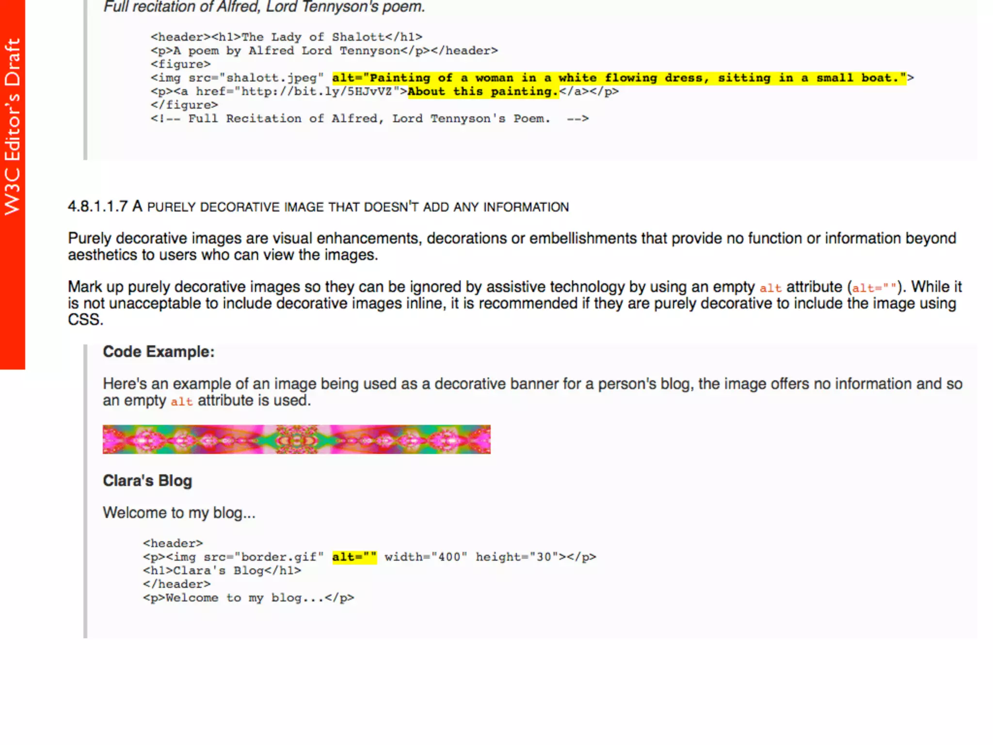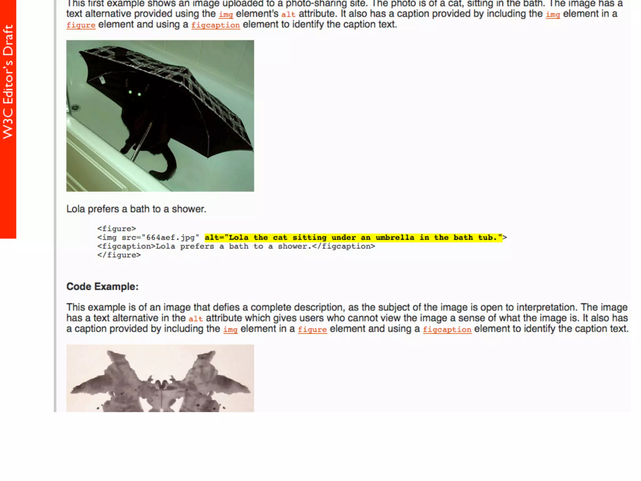 alt属性 HTML5仕様書 (Editor's Draft 27 November 2013) 4.8.1.1 Requirements for providing text to act as an alternative for images alt属性の書きかた すごい充実した解説