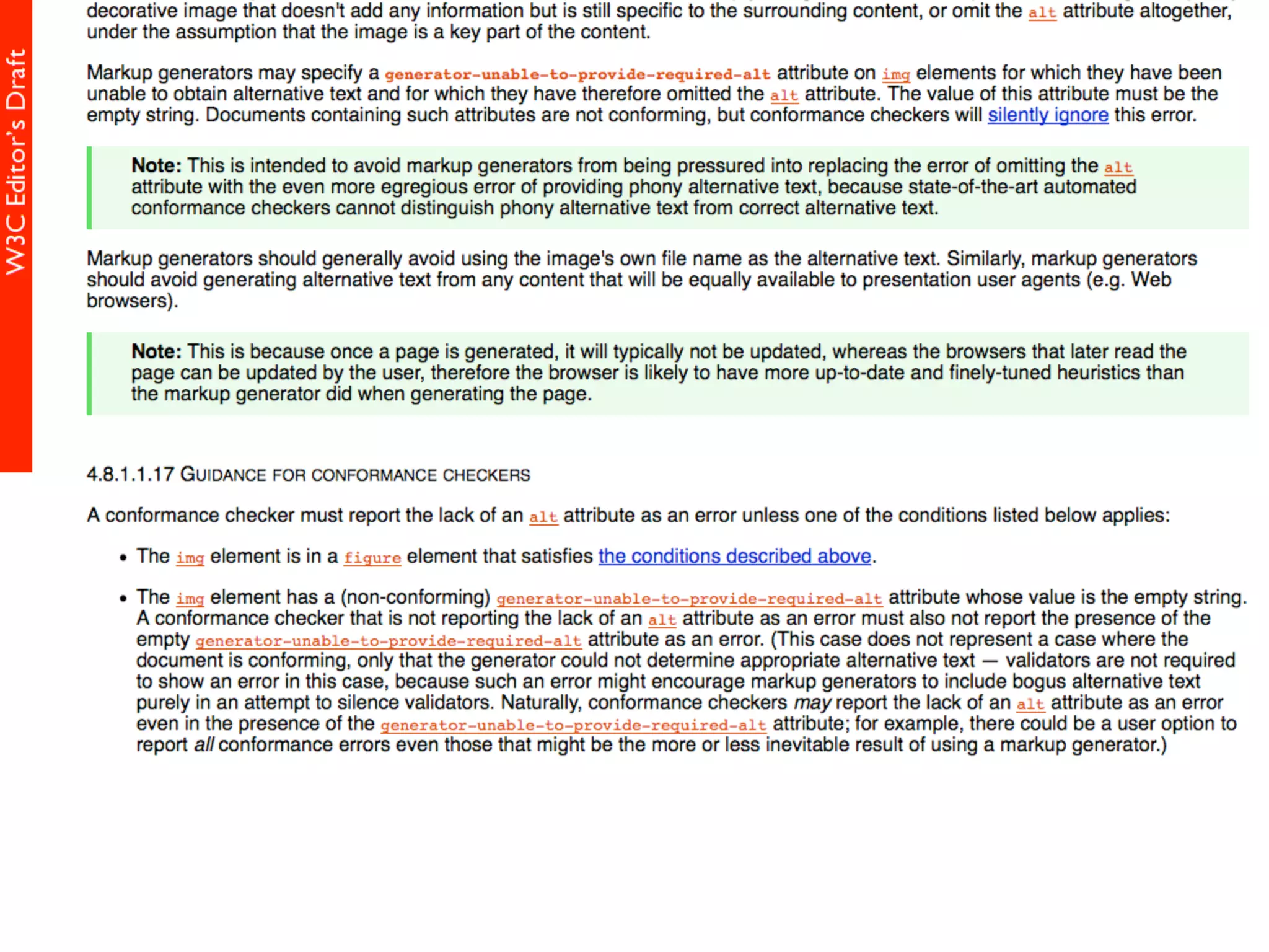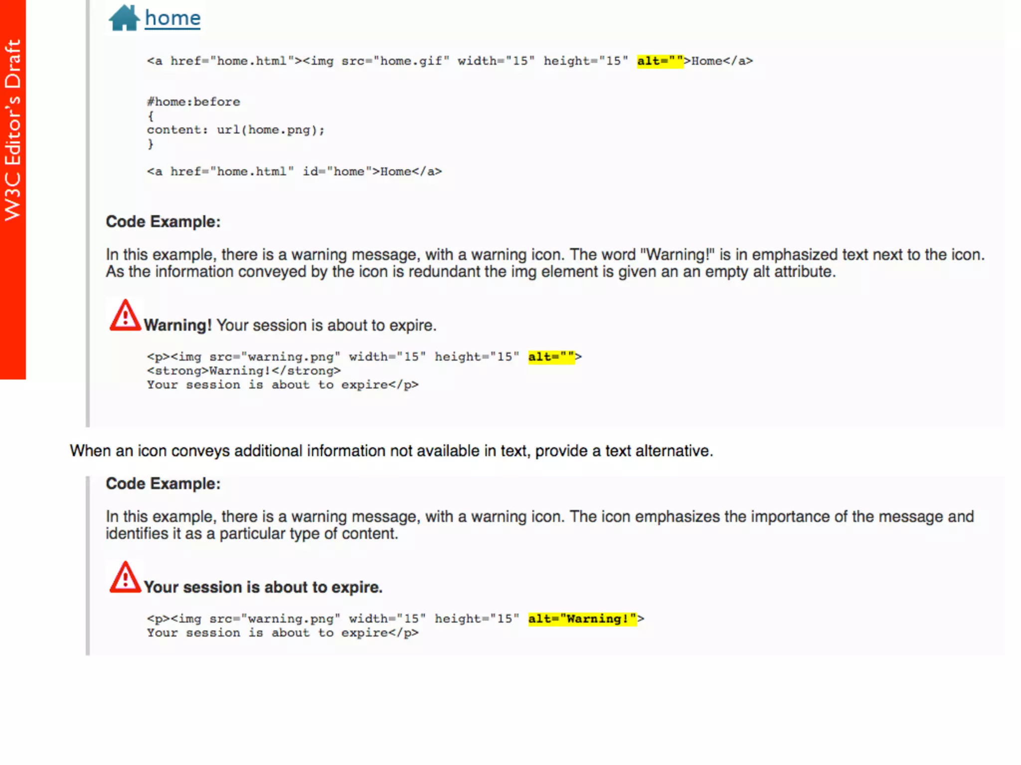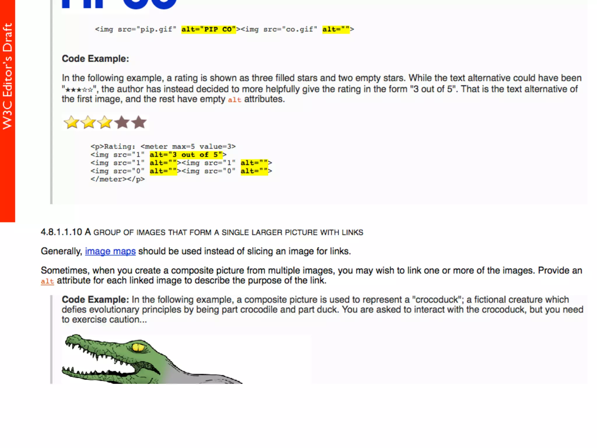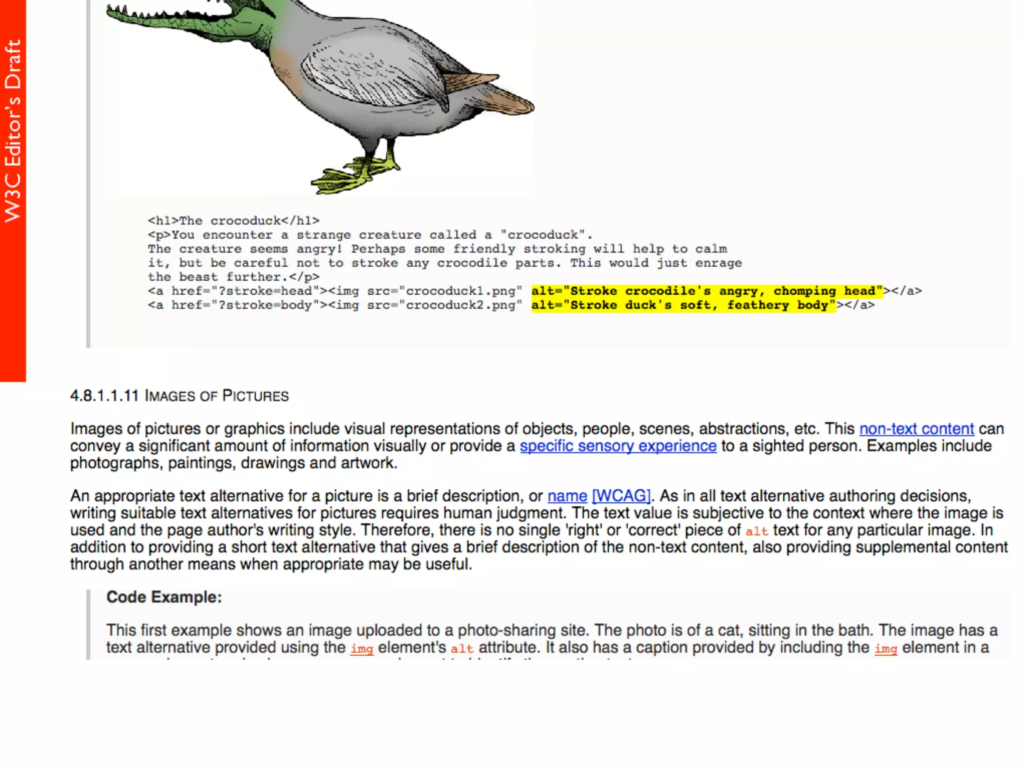 alt属性 HTML5仕様書 (Editor's Draft 27 November 2013) 4.8.1.1 Requirements for providing text to act as an alternative for images alt属性の書きかた すごい充実した解説