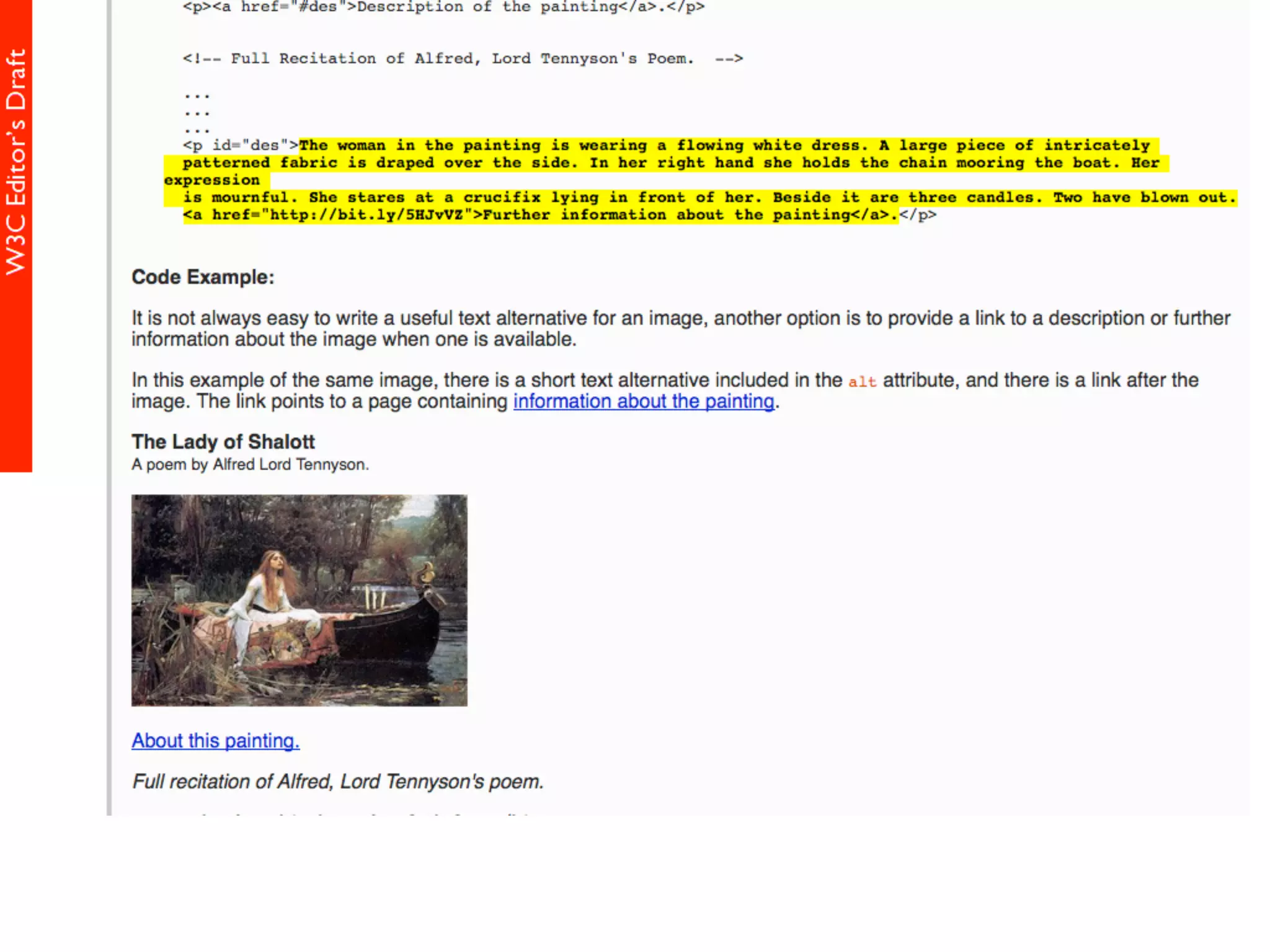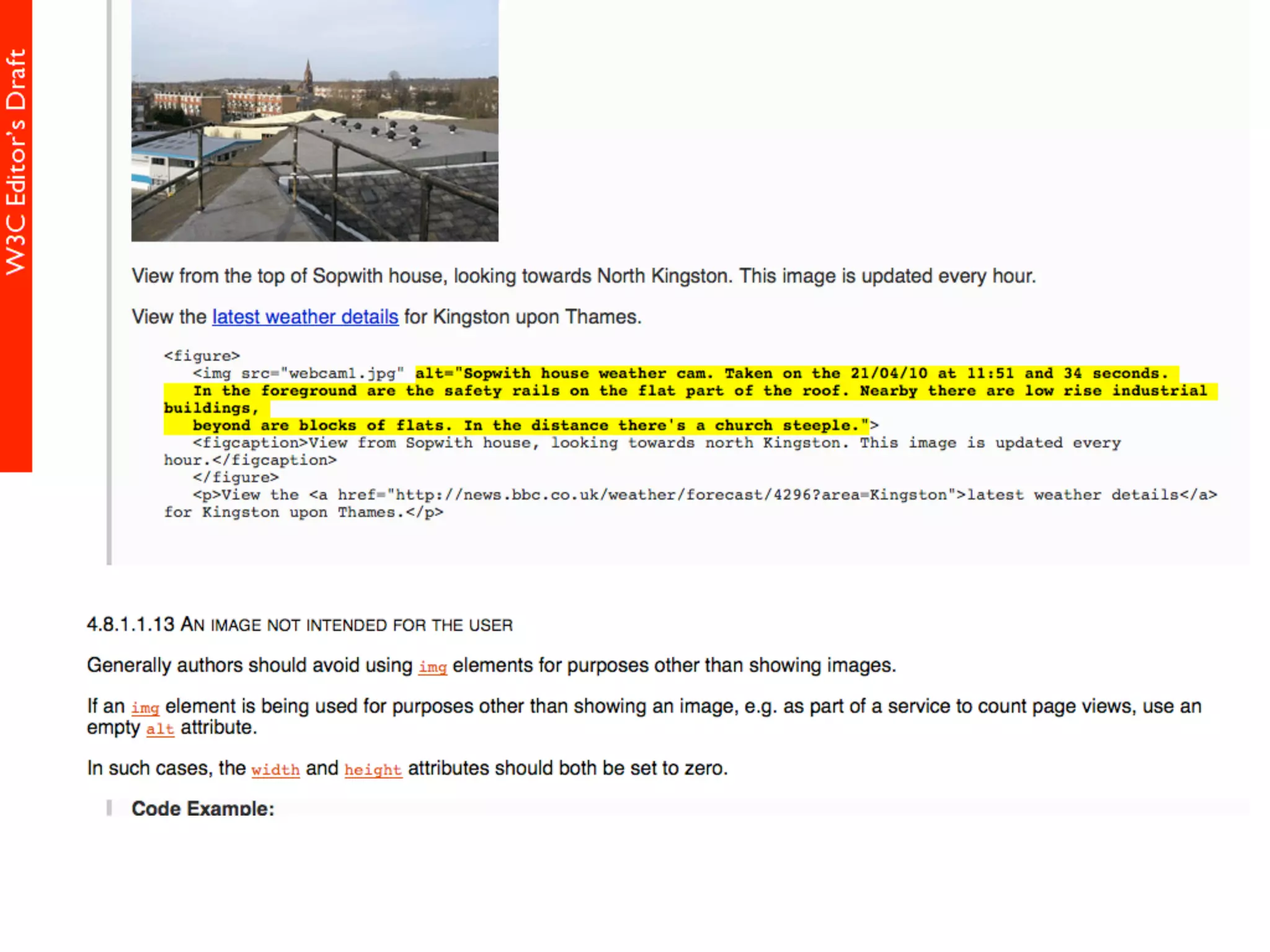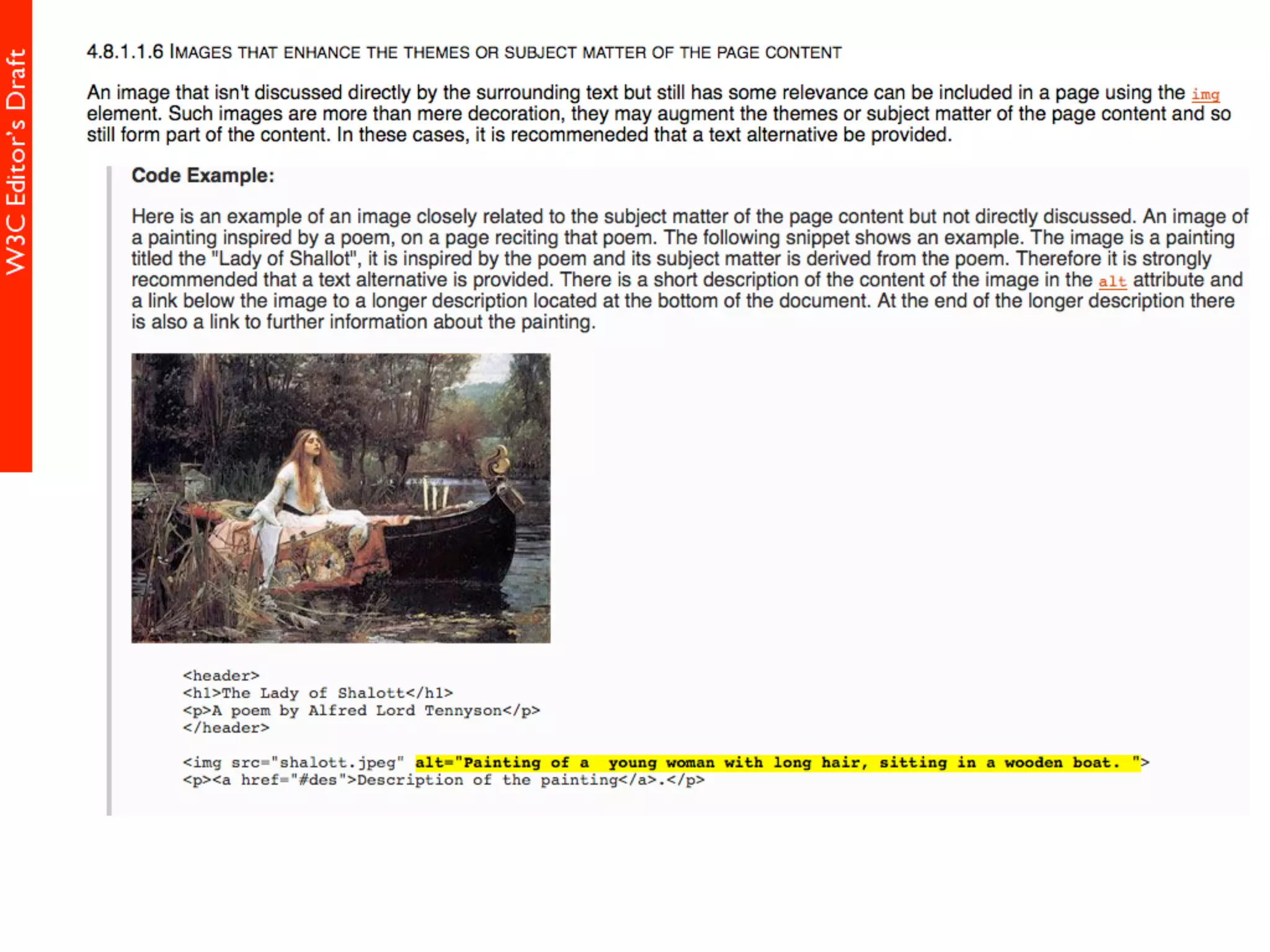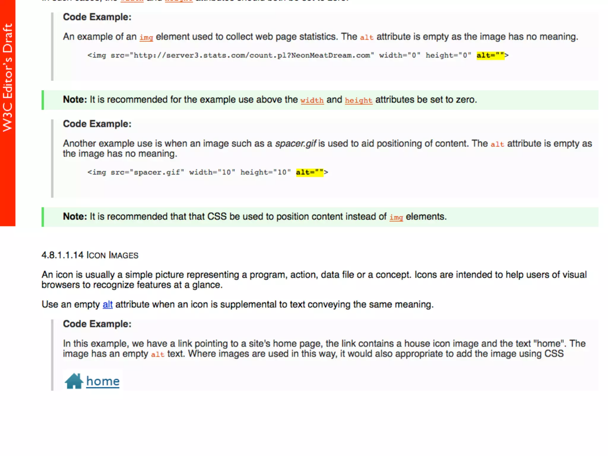 alt属性 HTML5仕様書 (Editor's Draft 27 November 2013) 4.8.1.1 Requirements for providing text to act as an alternative for images alt属性の書きかた すごい充実した解説