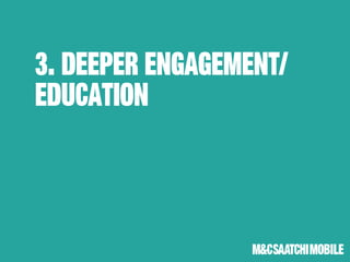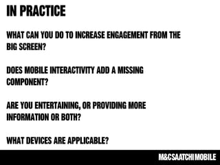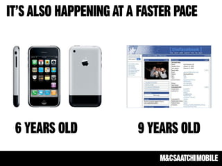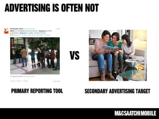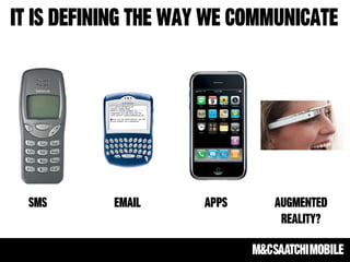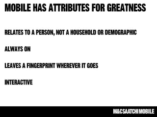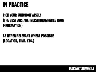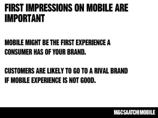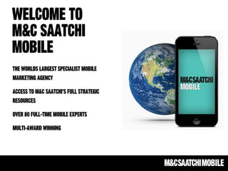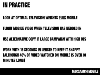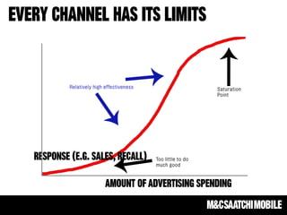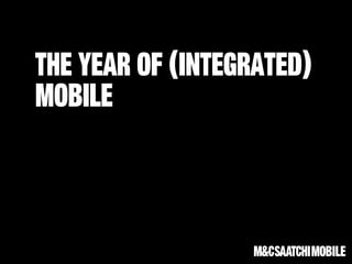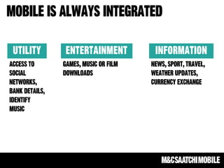 The document highlights the growing importance of integrated mobile strategies, emphasizing mobile's disruption across various sectors and its critical role in the purchase funnel. It provides statistics on consumer behavior regarding mobile usage for shopping, including significant growth in mobile payment transactions. Additionally, it discusses challenges in mobile advertising, such as fragmentation and the importance of reminding consumers about familiar products rather than introducing new information.
