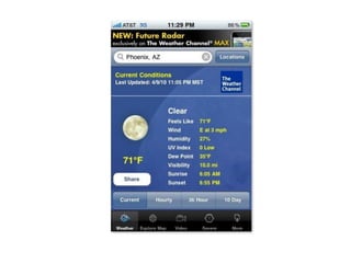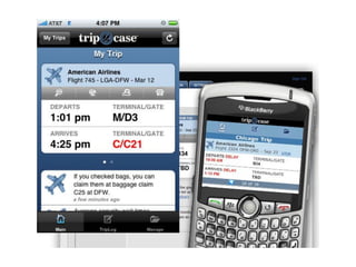 The document discusses strategies for designing mobile experiences. It provides examples of different types of mobile projects including: