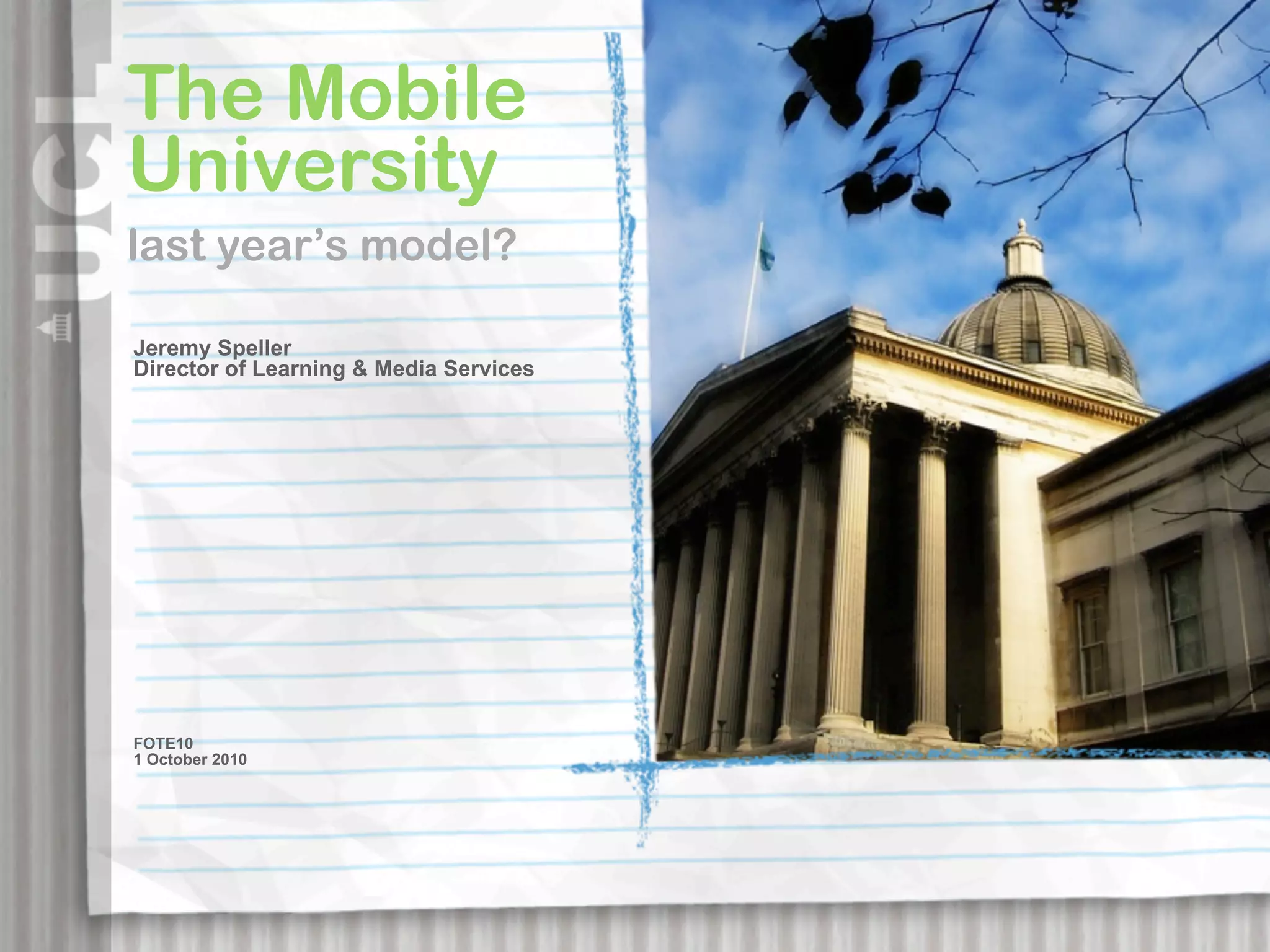 The document discusses the concept of the 'mobile university' and its evolution, questioning whether current technologies provide meaningful educational benefits or if they are merely informational tools. It references various experiments and opinions from educational technologists and highlights the ongoing debate about the effectiveness and relevance of mobile technology in higher education. The author ponders whether such advancements are truly innovative or simply a repeat of past trends.