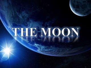The Moon is Earth's only natural satellite. It has no atmosphere and its surface is marked by craters and dust. The same side always faces Earth. The Moon's diameter is about one quarter that of Earth and it has lower gravity and density than Earth. Temperatures vary greatly from 130°C during the day to -110°C at night. Large flat plains called maria cover parts of the near side, formed by ancient lava flows. Craters and long valleys called rilles are also features of its surface. The Moon orbits Earth about every 27 days in a cycle linked to eclipses.