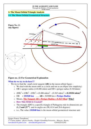 - The moon's orbit uses Pythagorean theorem, with the distance between perigee and apogee (43,000 km) as the base unit to create all other orbital distances.