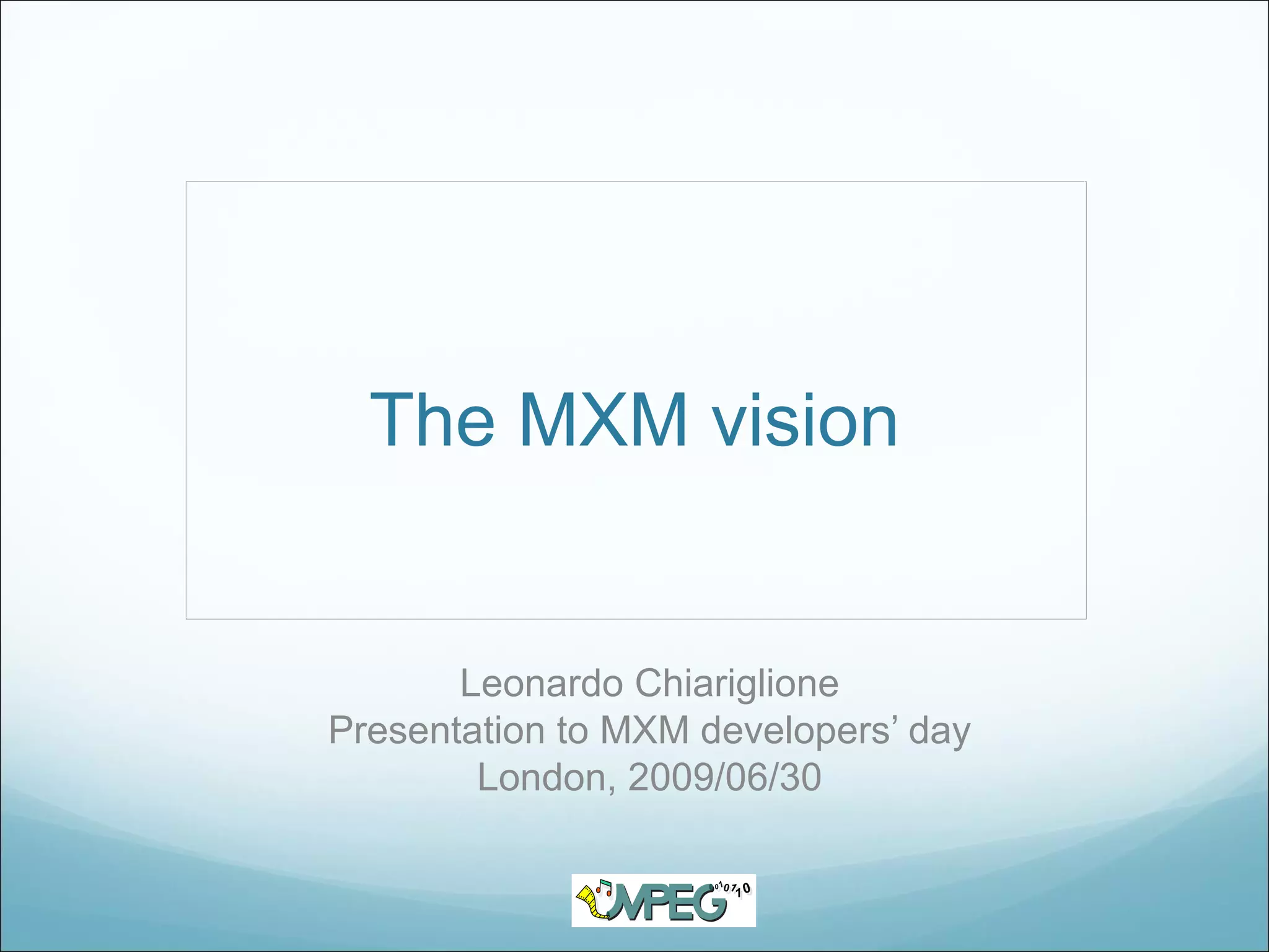This document discusses the vision for MXM (Multimedia eXchange Middleware), which aims to create a global digital media market through standardization. It outlines how MXM will enable applications to run across all MXM-compliant devices through standard APIs, and how MXM components will allow for competitive innovation through open standards. The document also discusses how MXM builds upon technologies like MPEG-21 and could eventually lead to the development of a common standard for Advanced IPTV Terminals.
