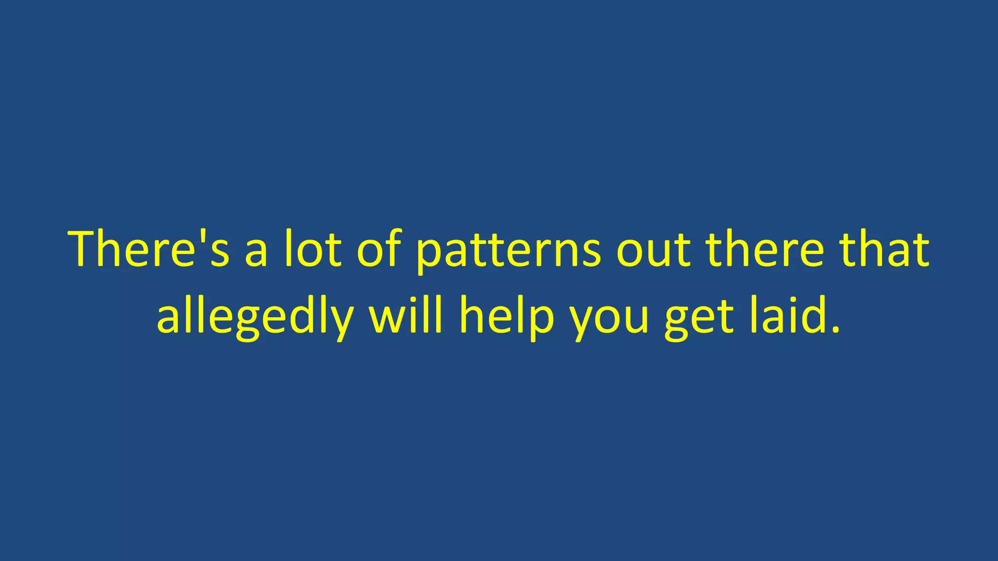 The document critiques the idea of using specific seduction patterns or techniques to attract women, arguing that they do not exist and that success comes from trial and error. It emphasizes the importance of taking action and facing the fear of rejection rather than seeking memorized scripts or techniques. The author illustrates this with a story about a therapy session where a client was advised to seek out rejection as a means of overcoming fear and ultimately found success.
